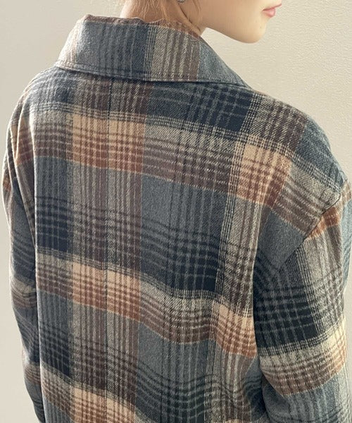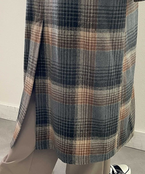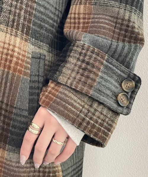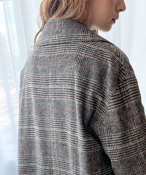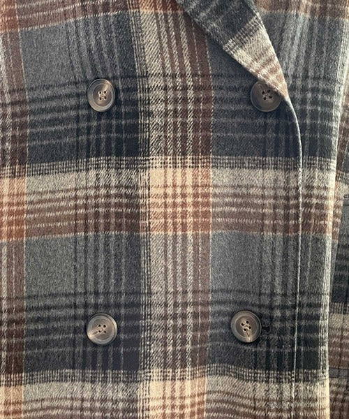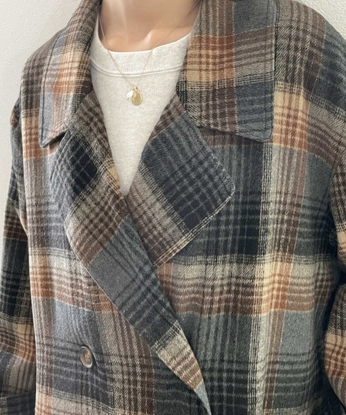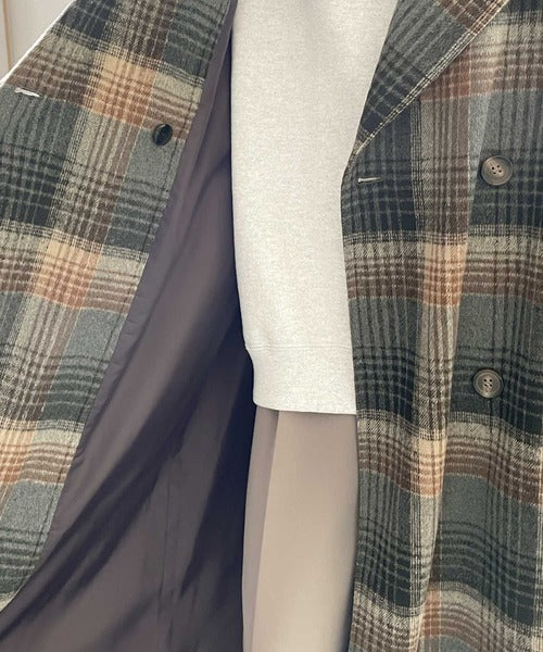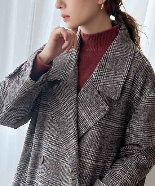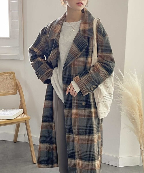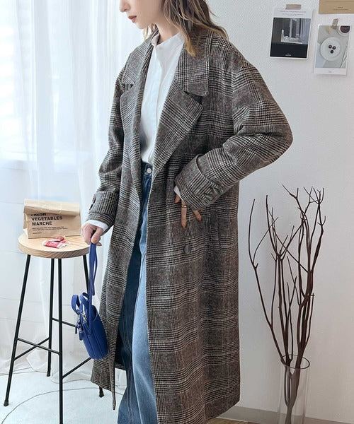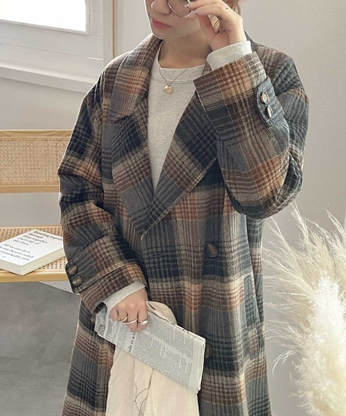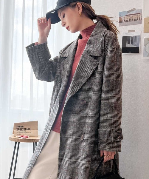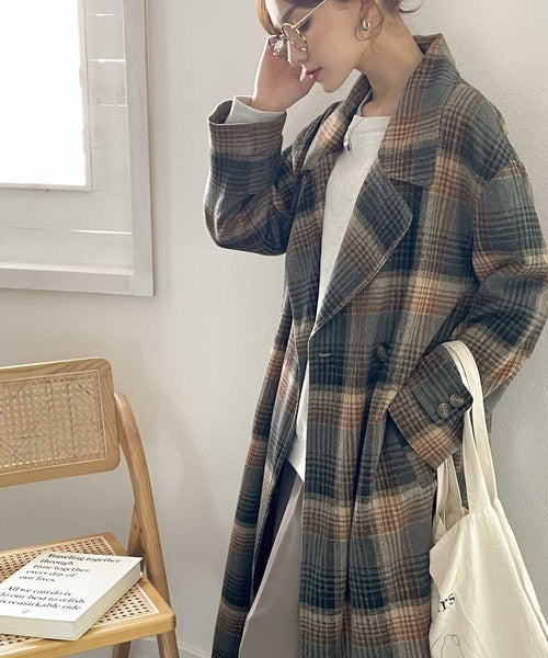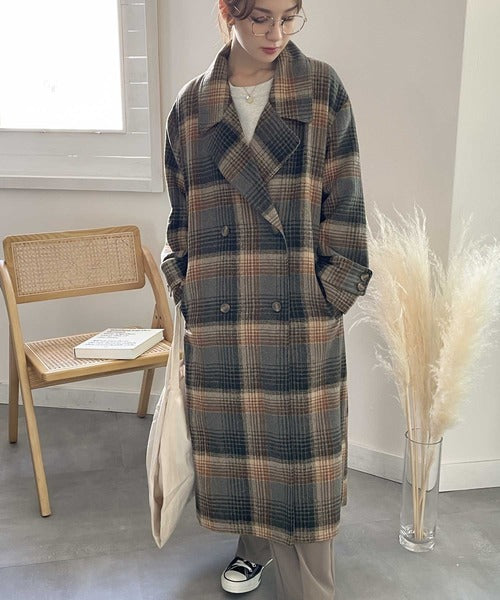 チェック柄LOVER。レトロチェック柄ロング丈ダブルコート ce1010136