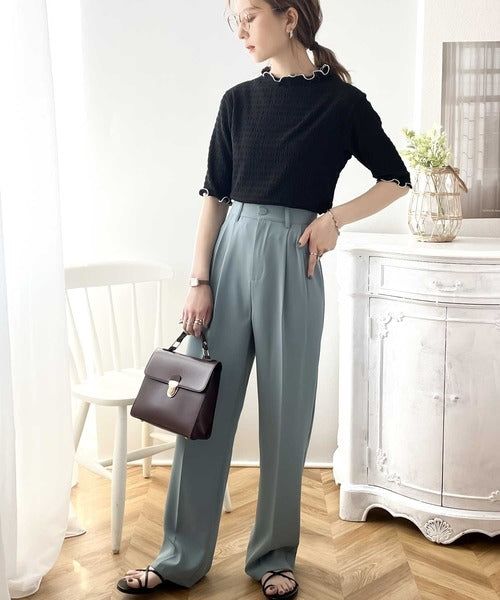 程よくすっきりしたシルエットなので、スラックスやフレアパンツに