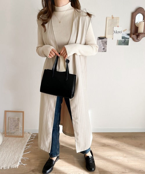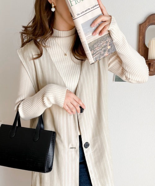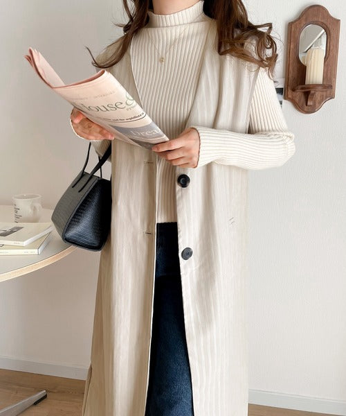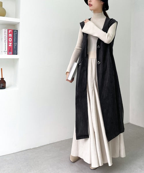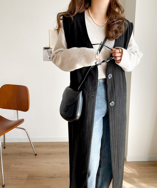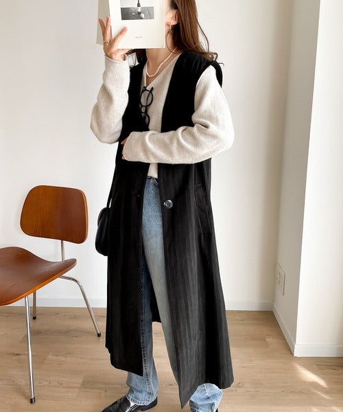 羽織るだけでモード感高まる、メンズライクなロングベスト。