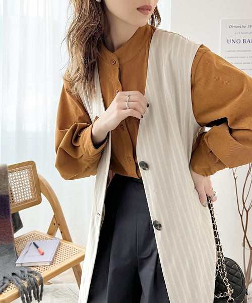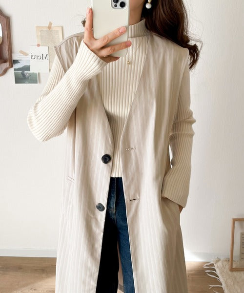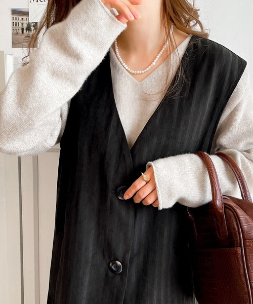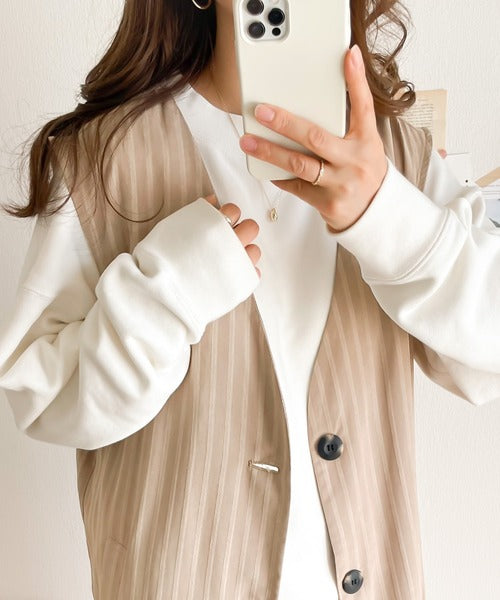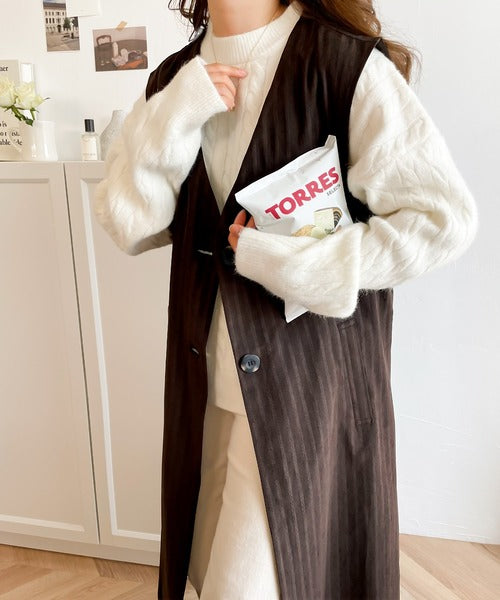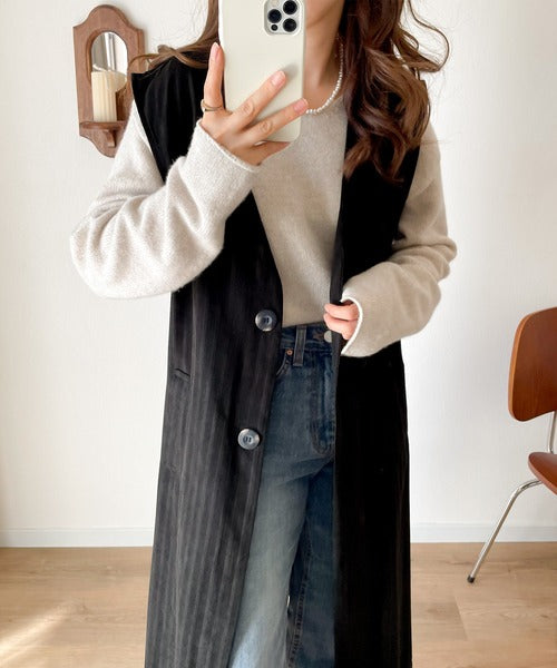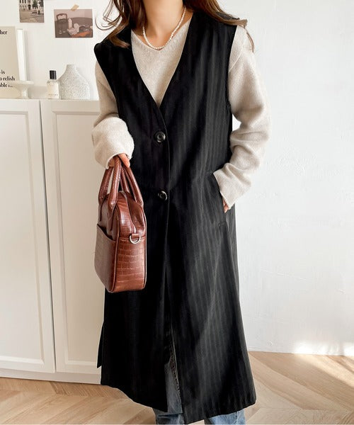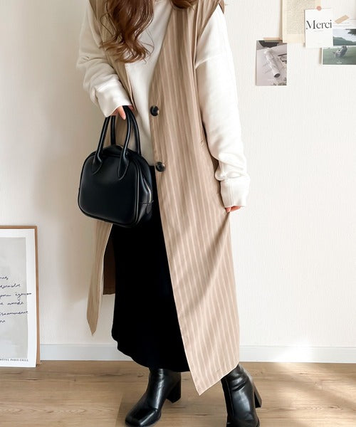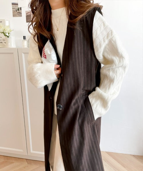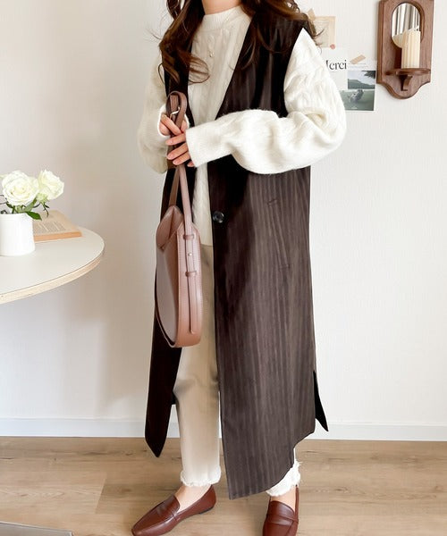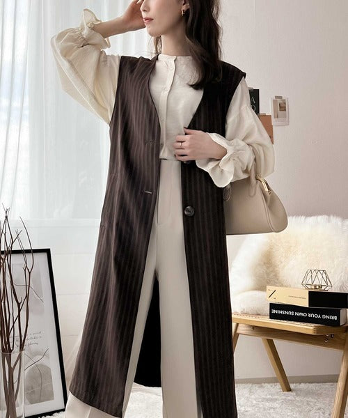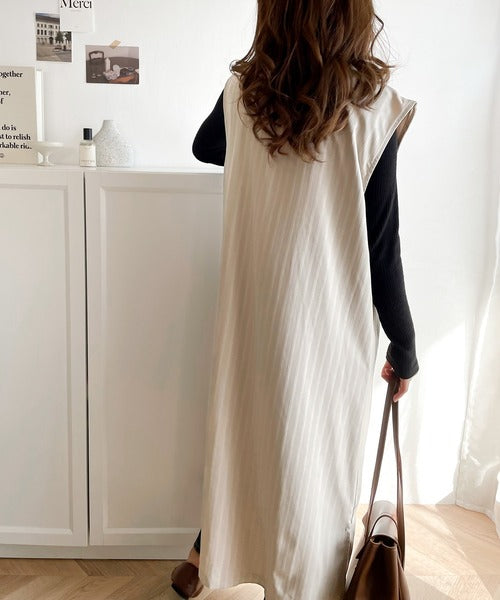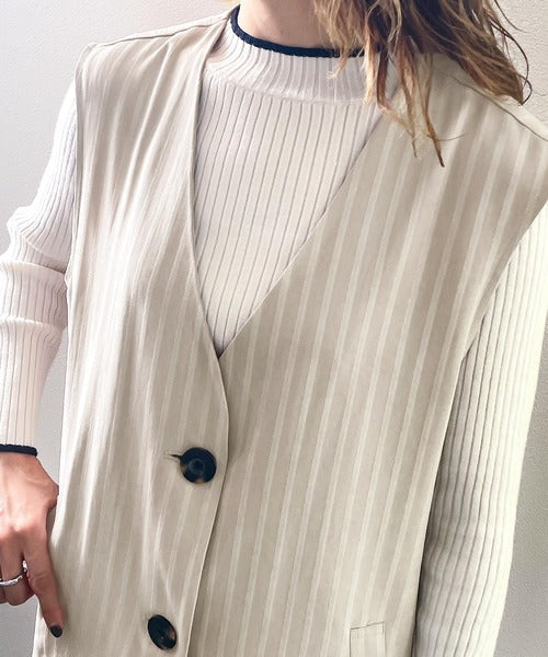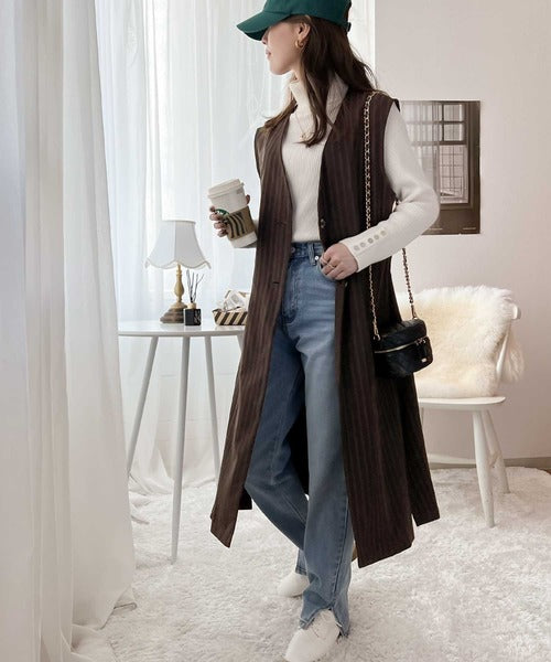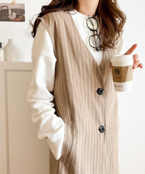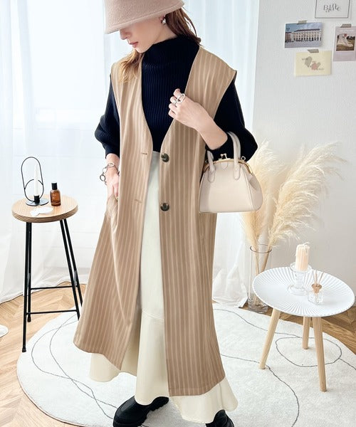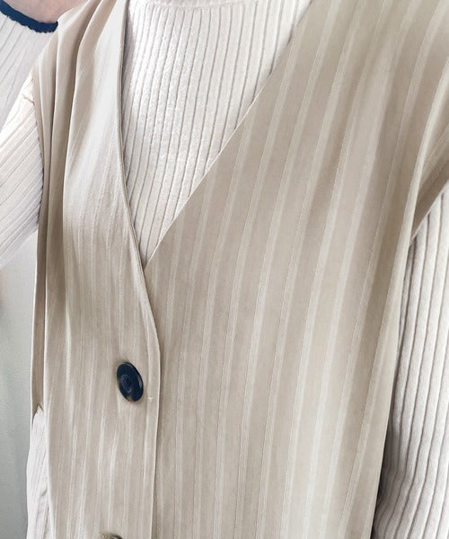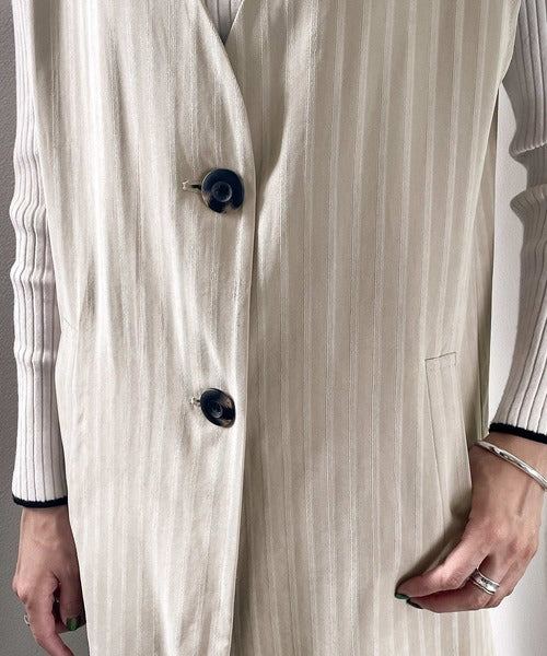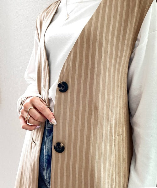 セットアップも楽しめる、ストライプ柄ロングジレ。