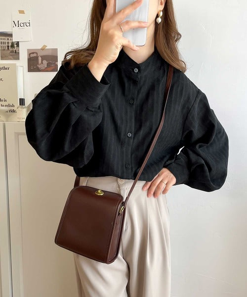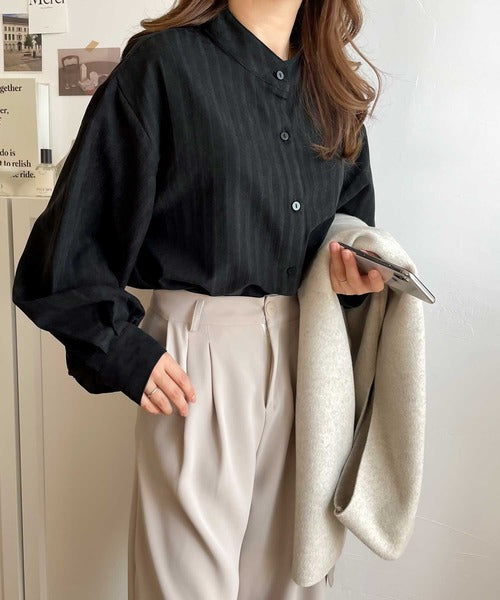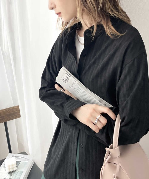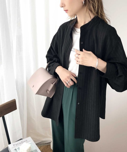 袖口コンシャスでトレンド感のあるバンドカラーシャツ。