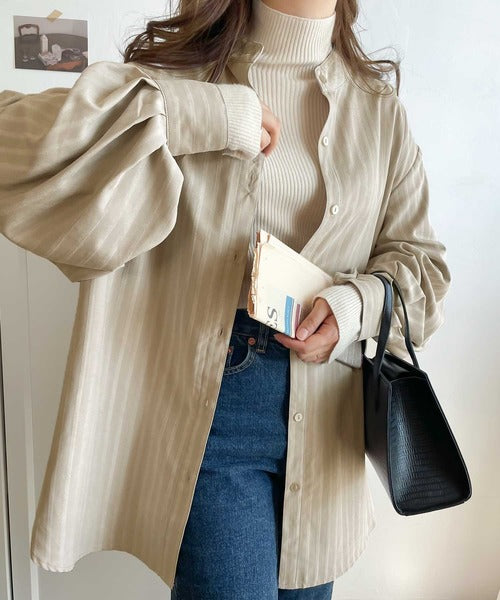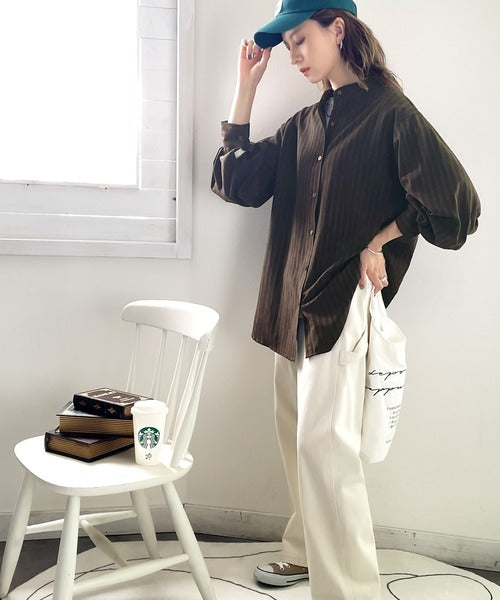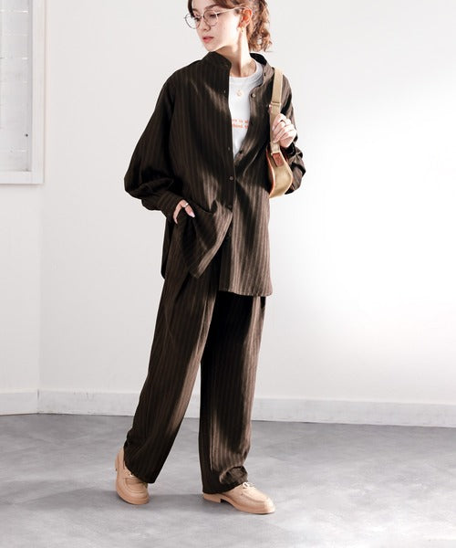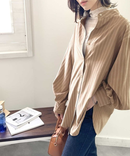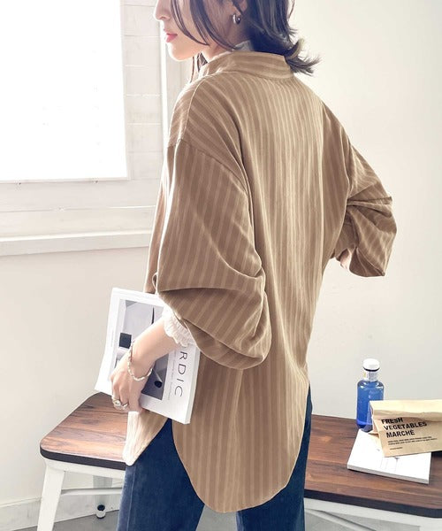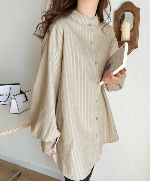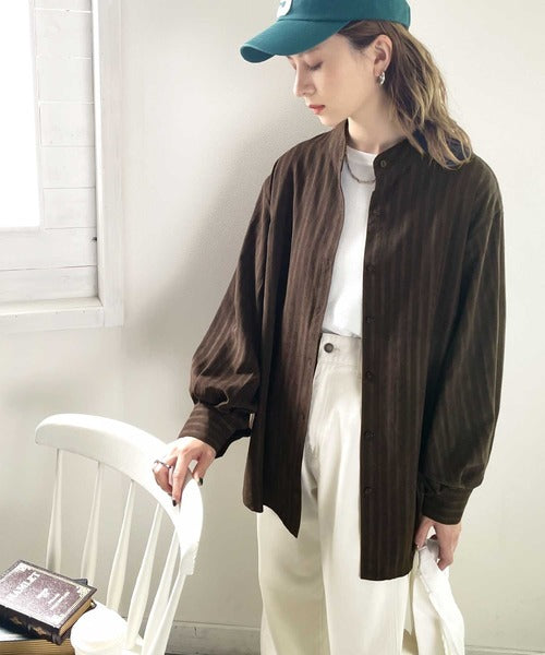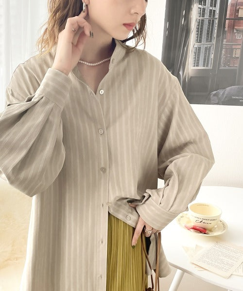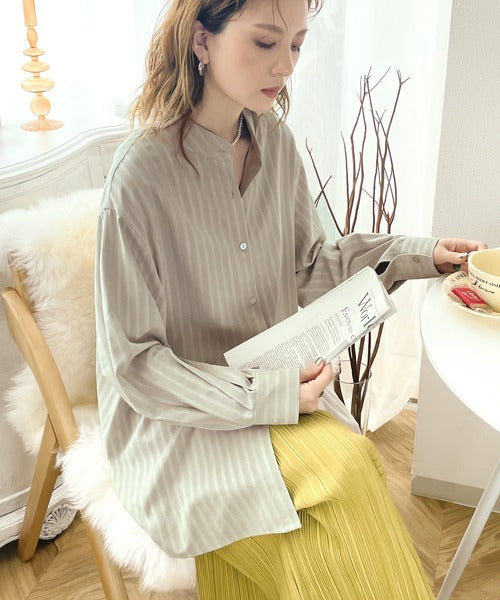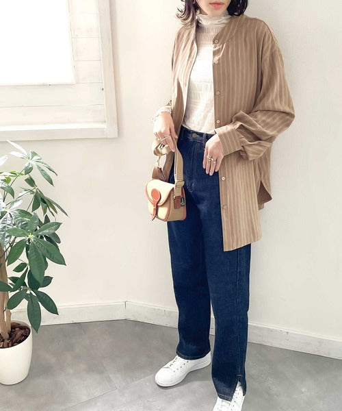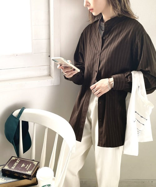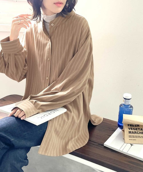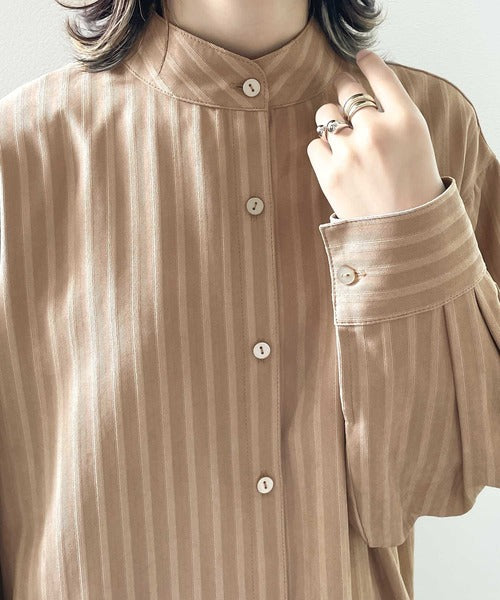 春気分はシャツから取り入れて。ストライプ柄バンドカラーシャツ ce1010154