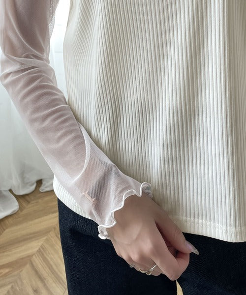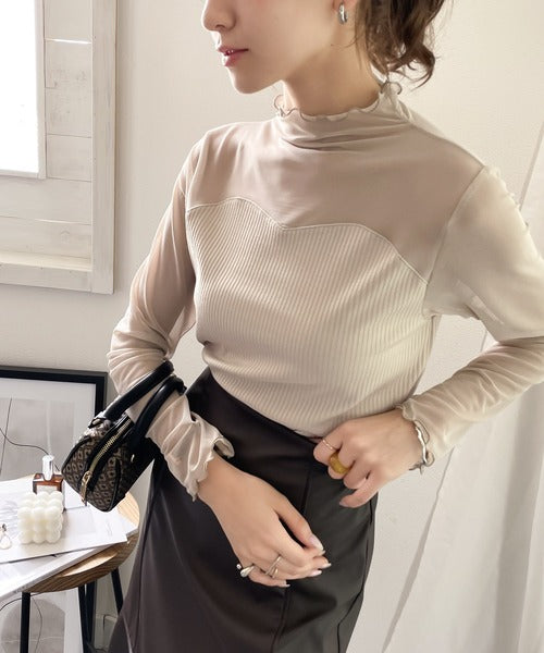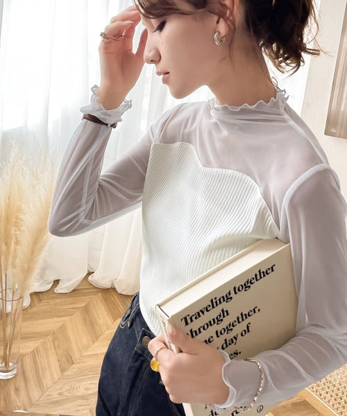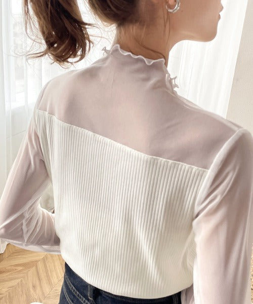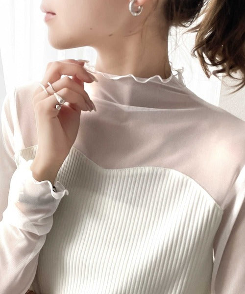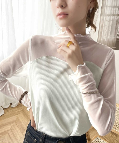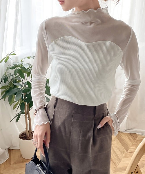 シアー×リブのドッキングトップス。