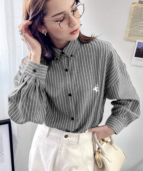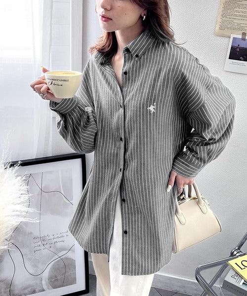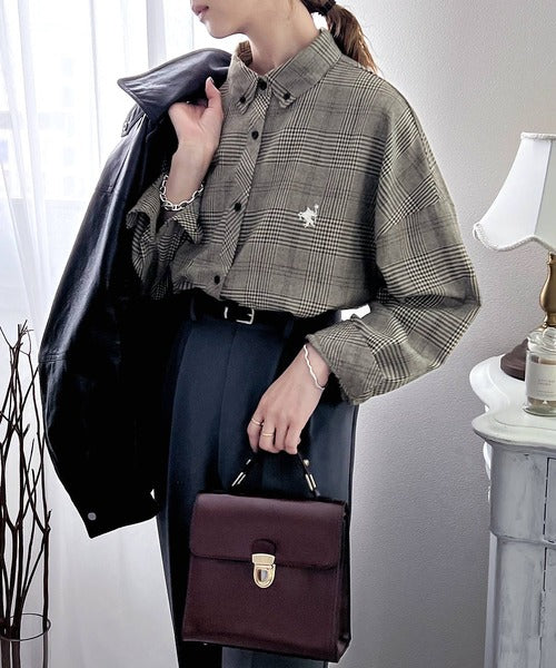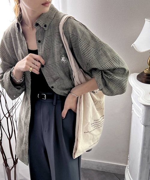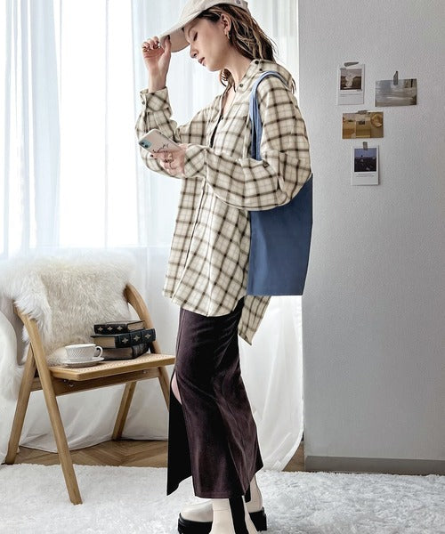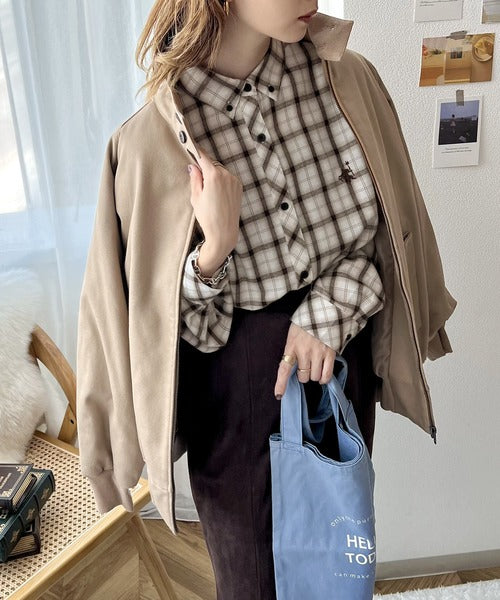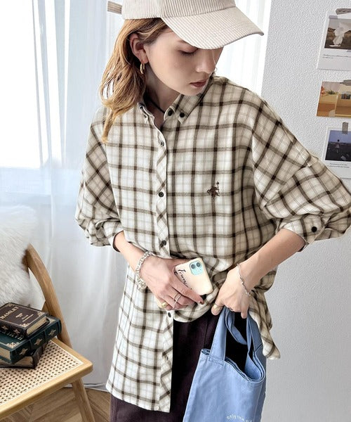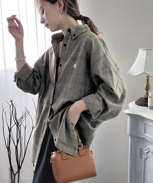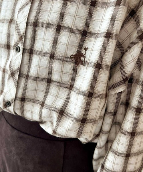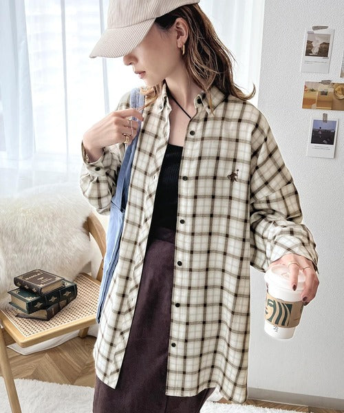 こっくり秋色に染められて。ワンポイント刺繍起毛素材ストライプ&チェック柄オーバーシャツ ce1010165