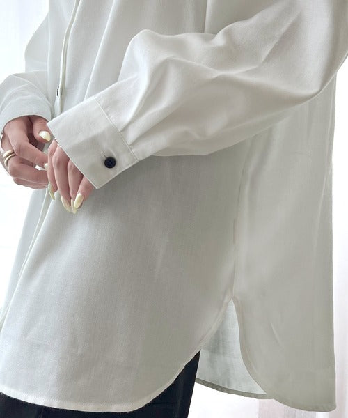 一枚でさらりと着用するのはもちろん、ライトアウターとしてボタンを開けてラフに羽織った着こなしもおすすめです。