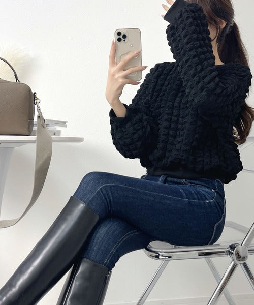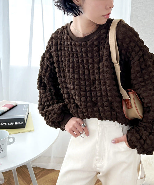 凸凹のぽこぽこした素材感がキュートな1枚。