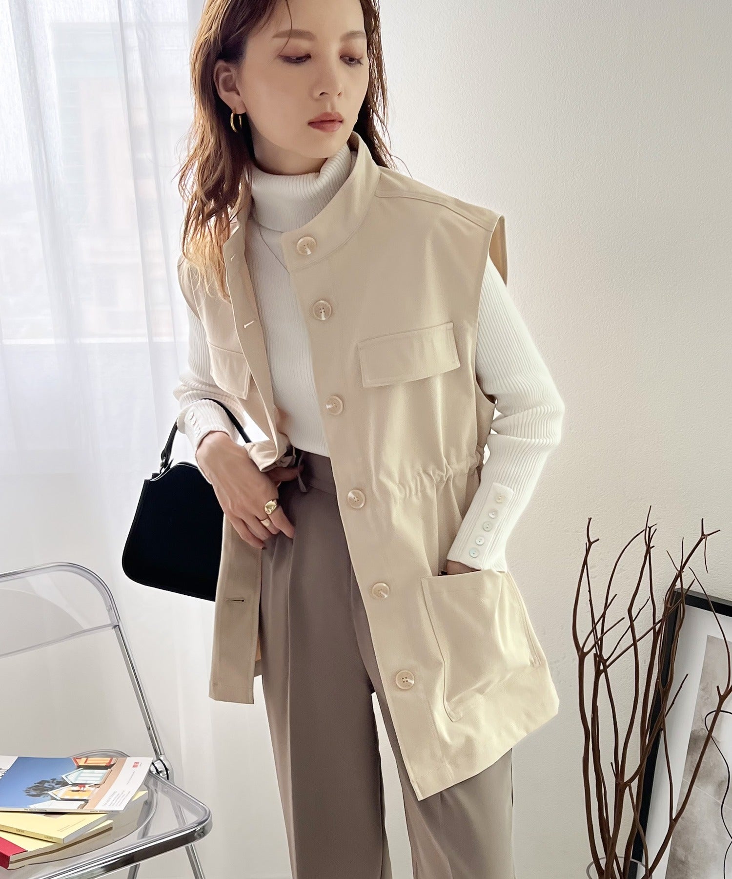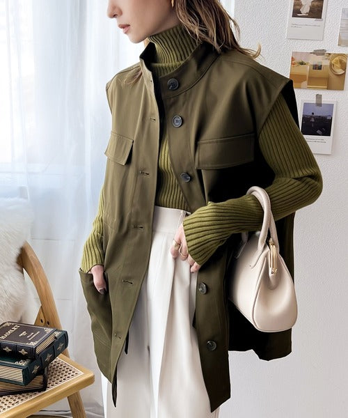秋のレイヤードスタイルにおすすめな今季トレンドのミリタリーベスト。