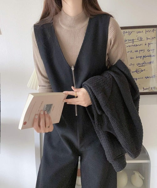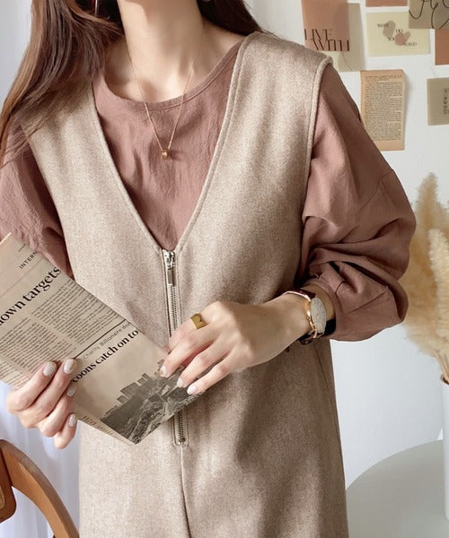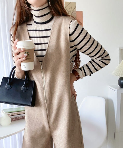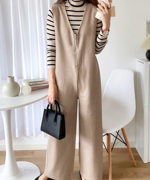ウール調にファスナーデザインが高見え度抜群で、こなれ感も出してくれるサロペット。