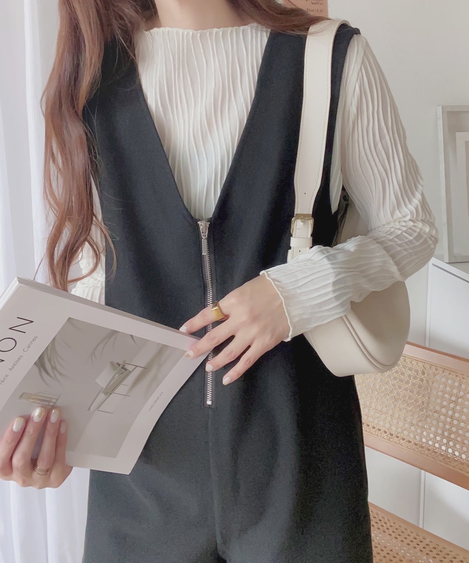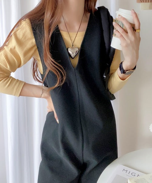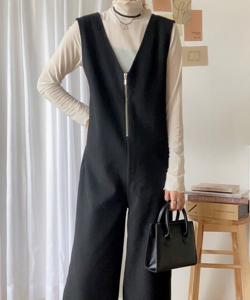 1枚で大人レディに格上げ。2wayファスナーVネックサロペット ce1010229