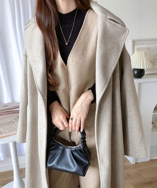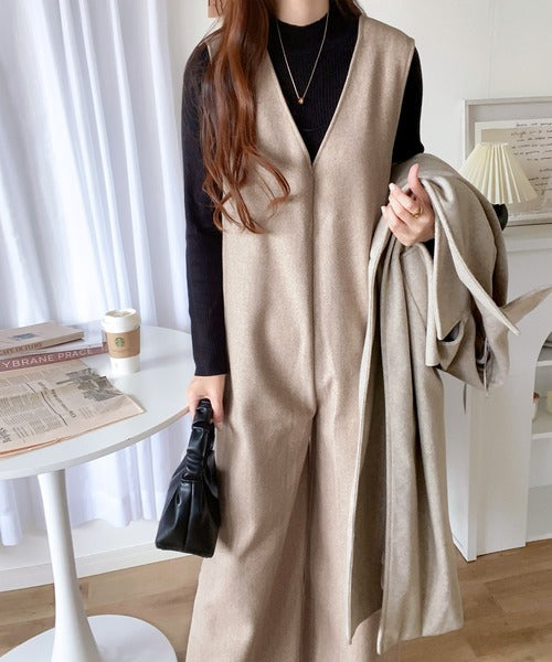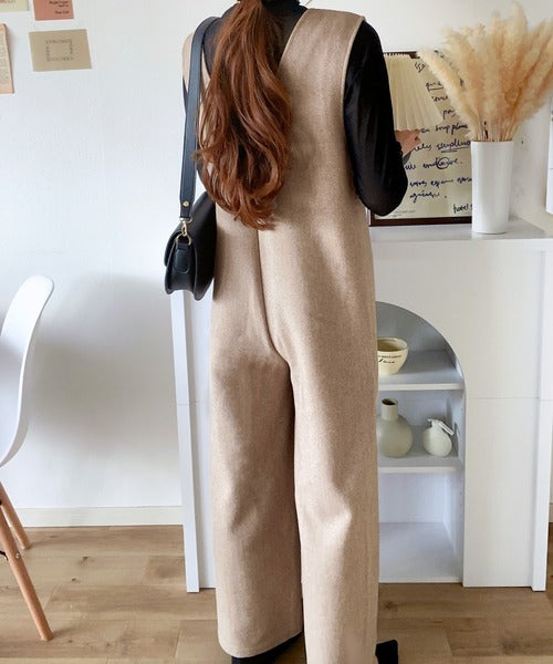 モードな雰囲気に仕上がるウールタッチのオールインワン。