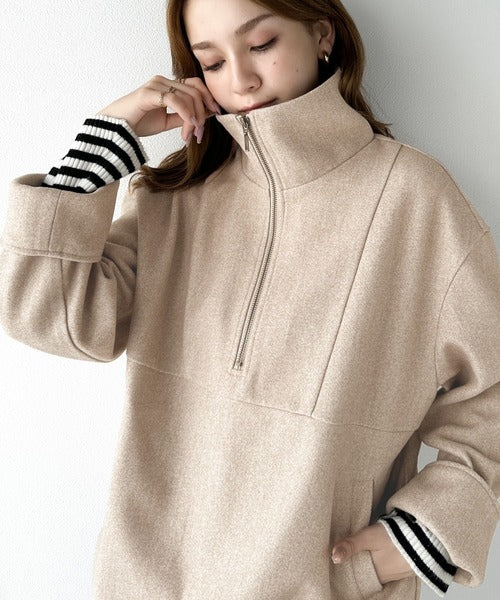 着映え感も高見え感も兼ね備えたハーフジッププルオーバー。