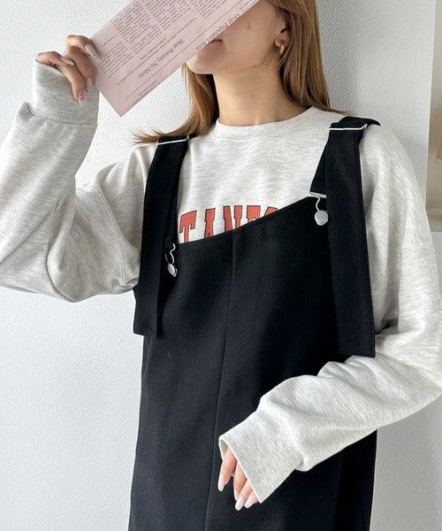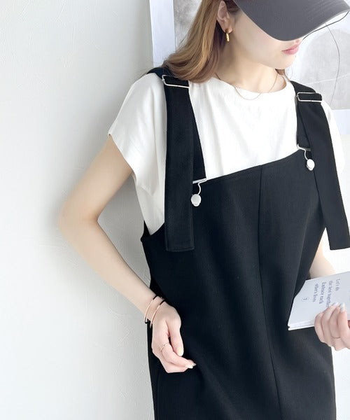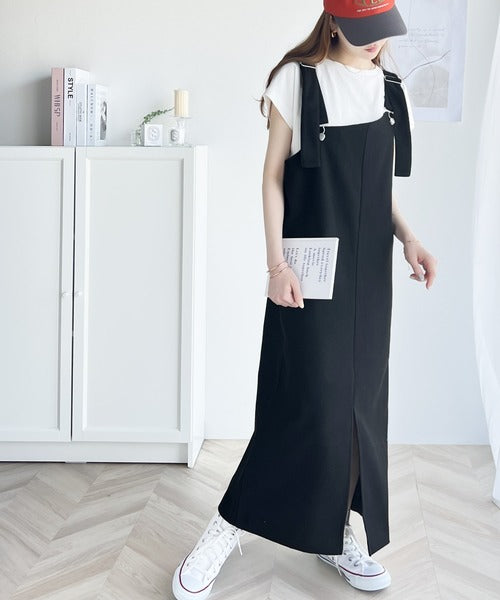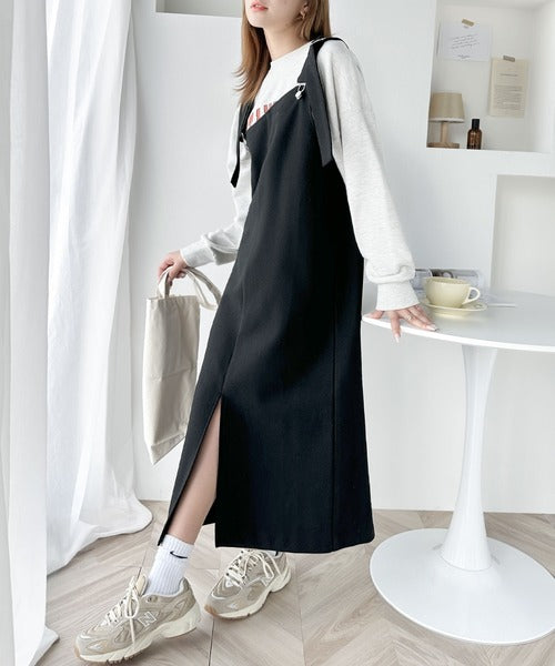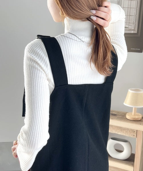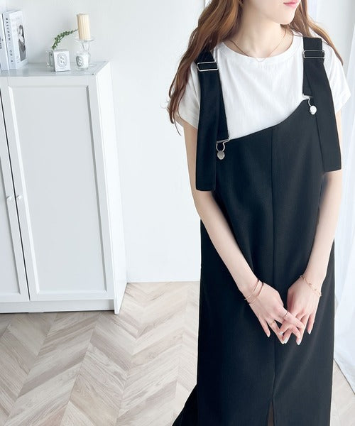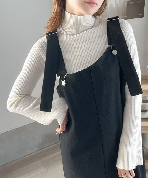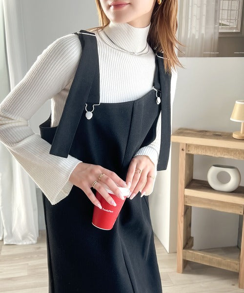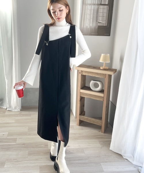 Iラインシルエットでモードな雰囲気に仕上げたジャンパースカート。