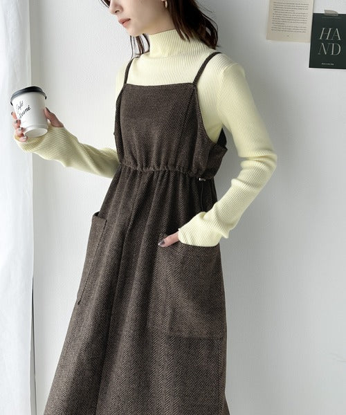 一枚でこなれ感のあるスタイル。ヘリンボーンキャミワンピース ce1010243