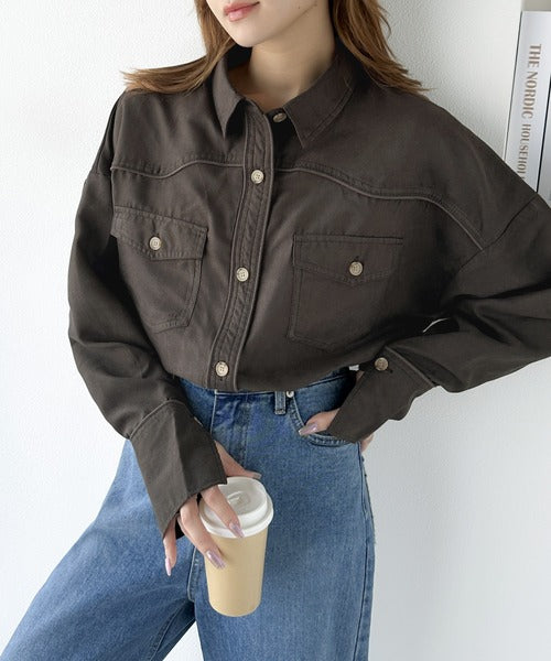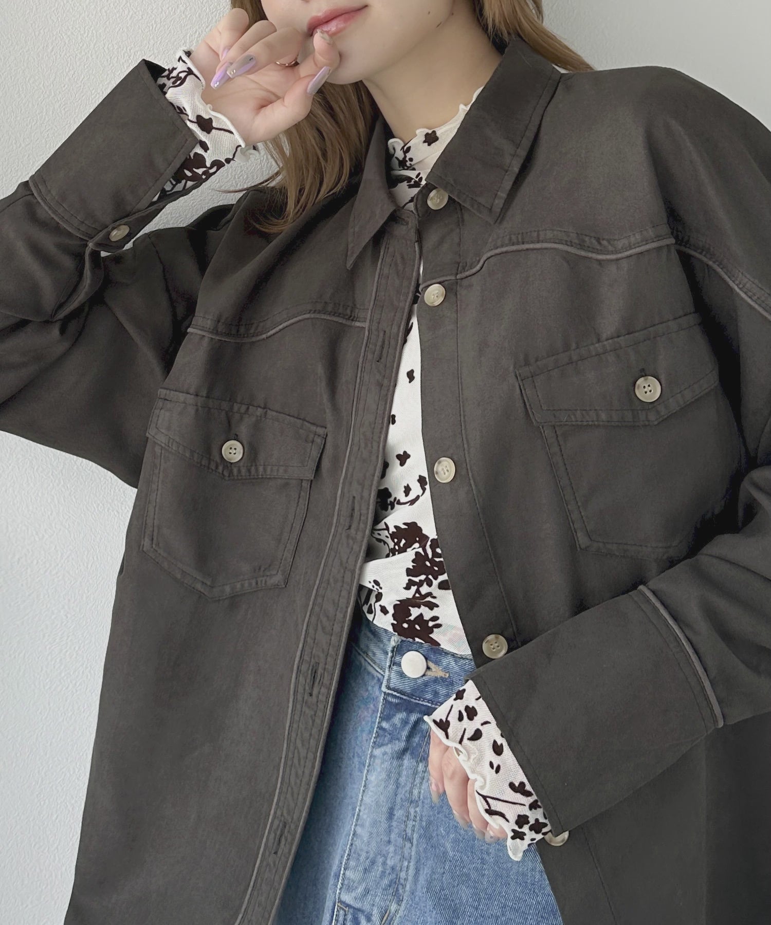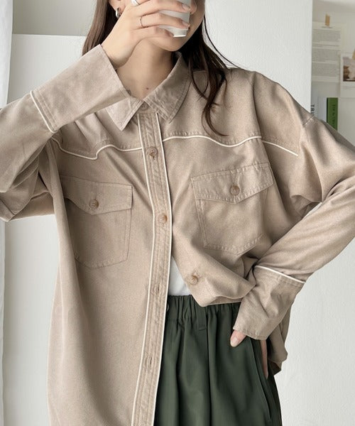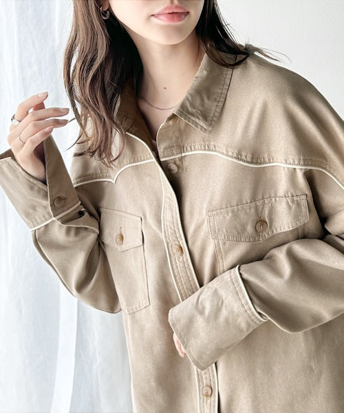 さらりと着られるカジュアルさが魅力。配色パイピングウエスタンシャツ ce1010245