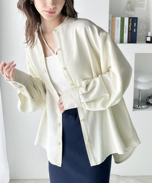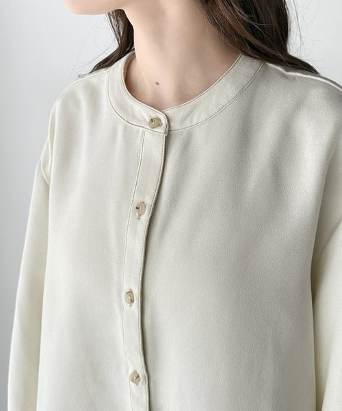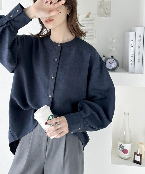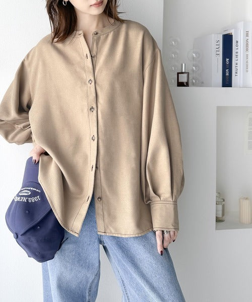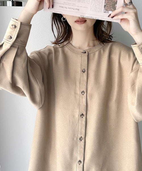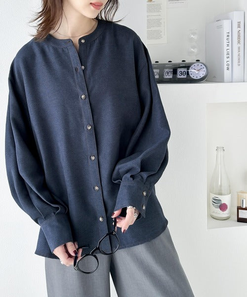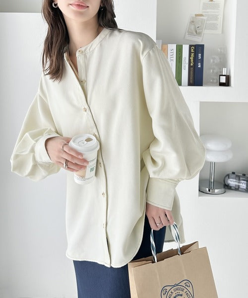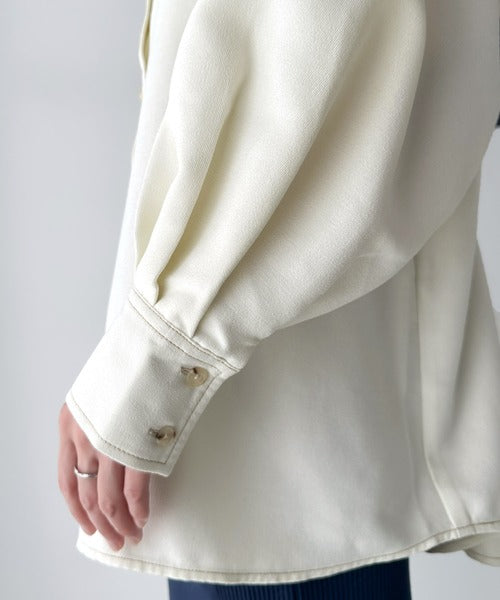 上品に映える。配色ステッチバンドカラー 袖ボリュームブラウス ce1010251