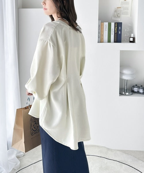 後ろ見頃にはタックデザインを施しバックスタイルも抜かりなし。