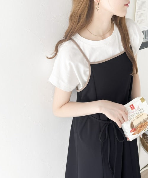 楽ちんなのに着映えする!配色パイピングキャミワンピース ce1010257