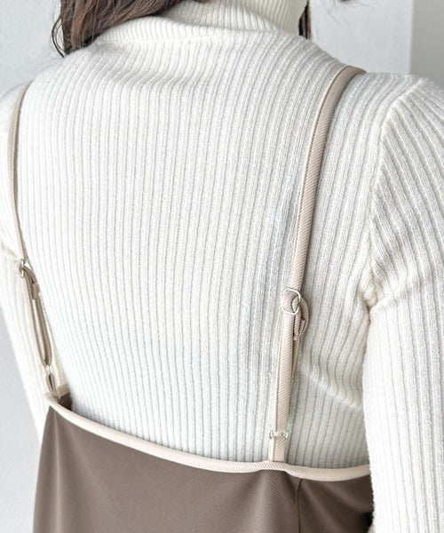 細めの肩紐と配色パイピングで華奢見えのアクセントに◎