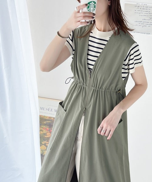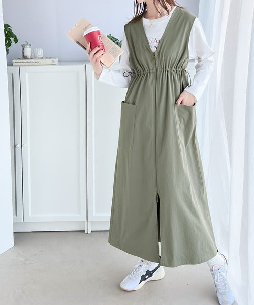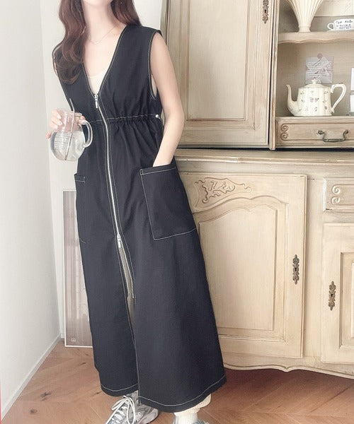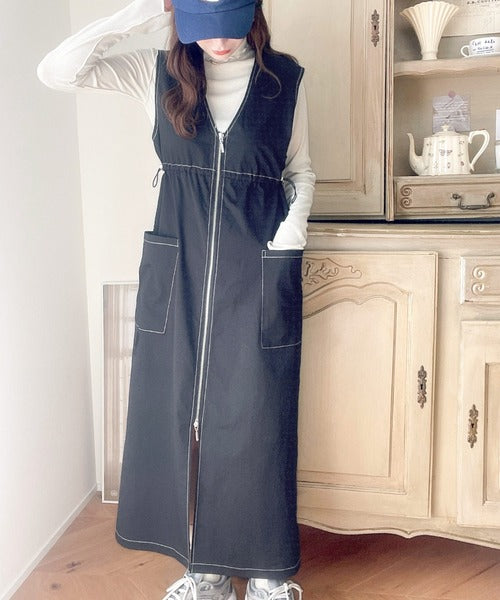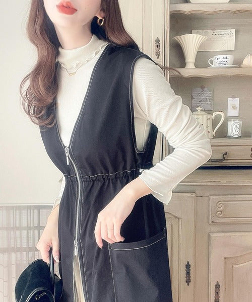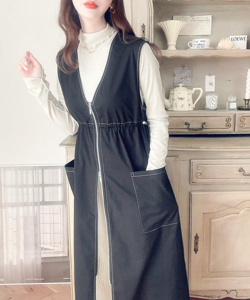 ジレとしてもワンピとしても使える!配色ステッチダブルジップジレワンピ ce1010264