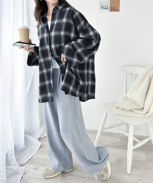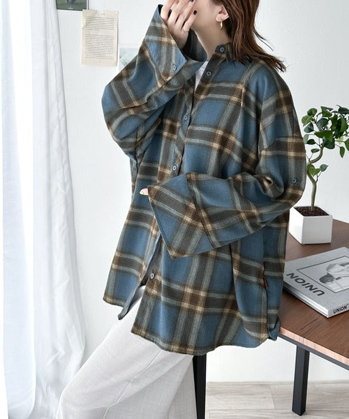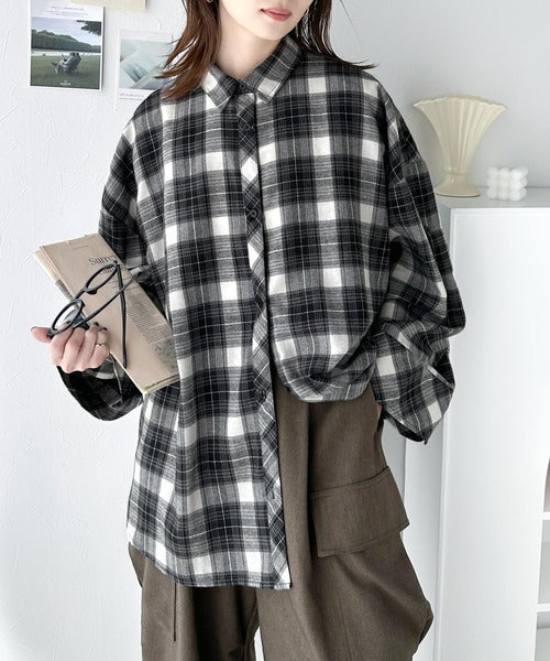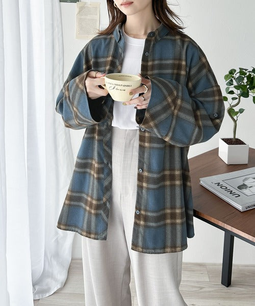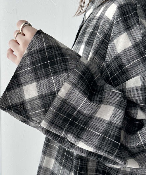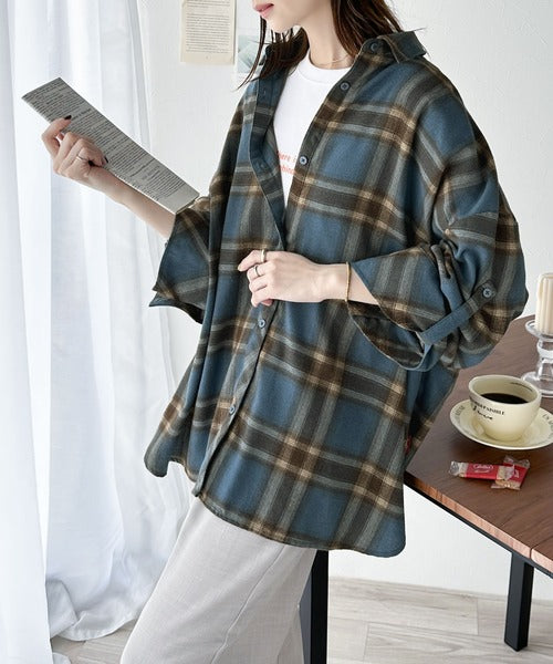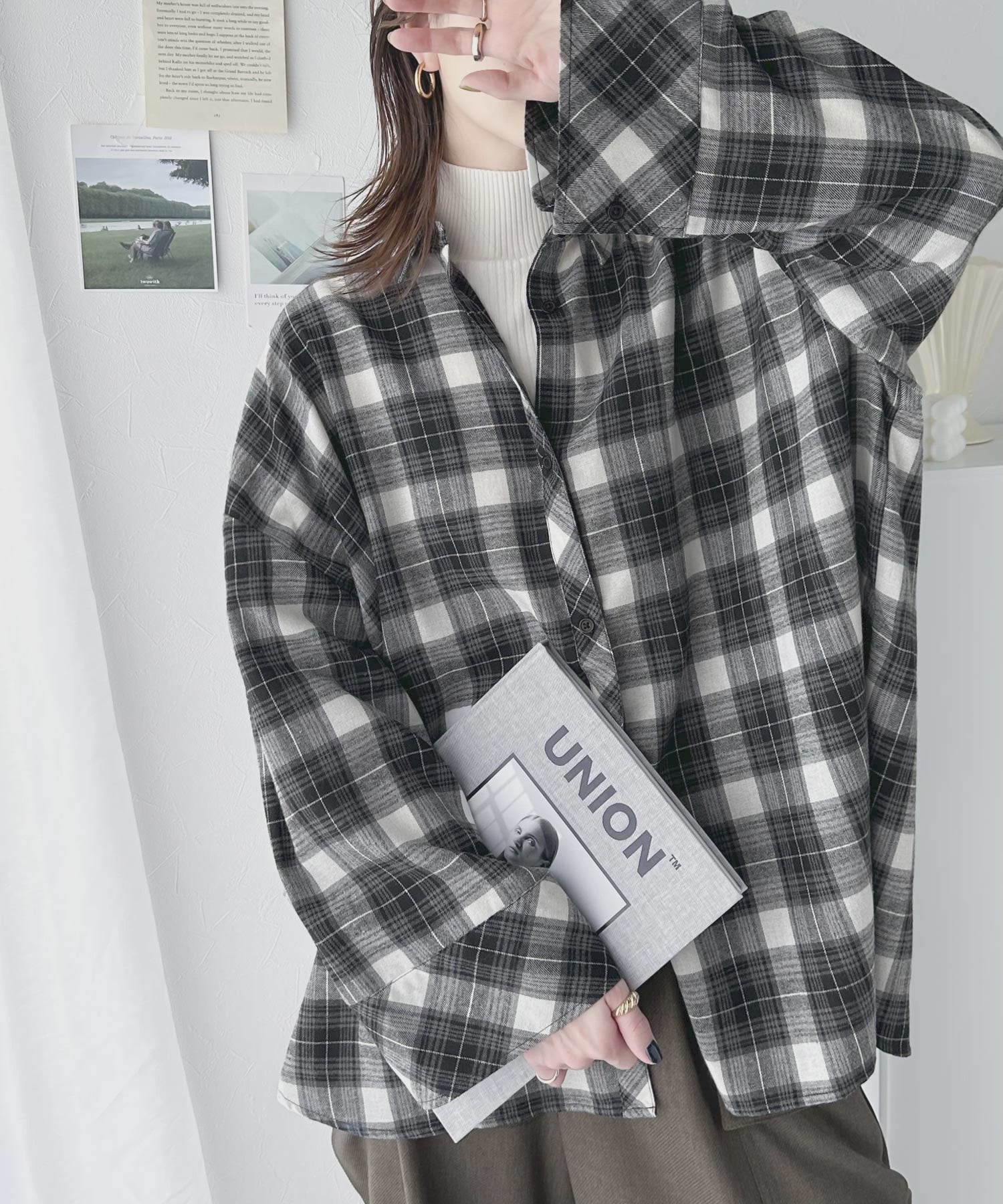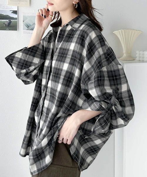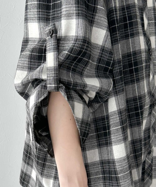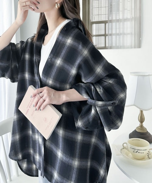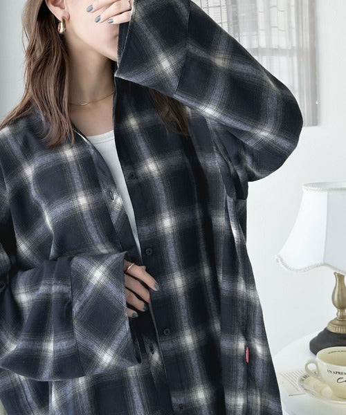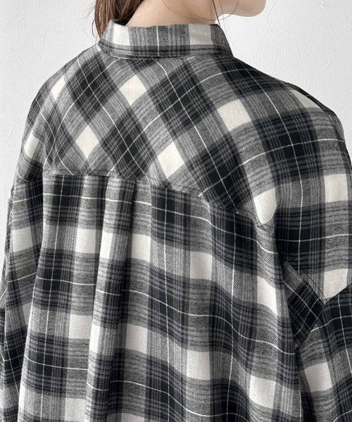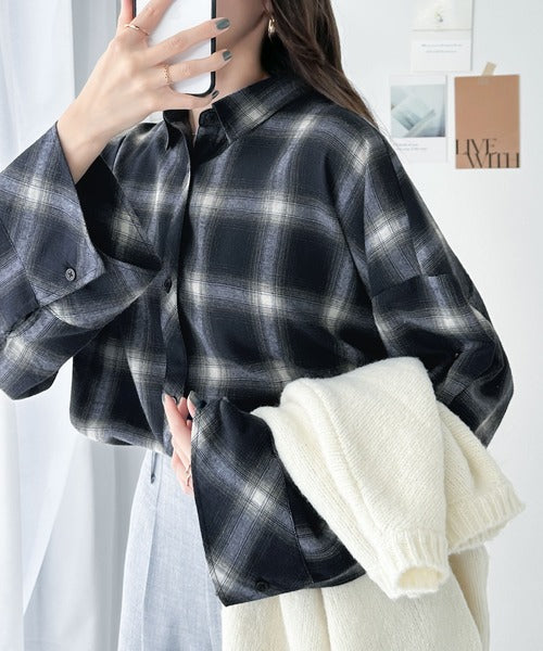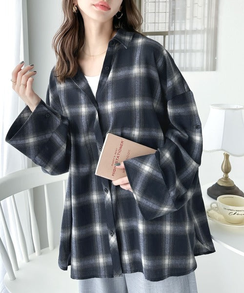 抜け感のあるカジュアルコーデに。袖ロールアップ オンブレチェックオーバーシャツ ce1010267