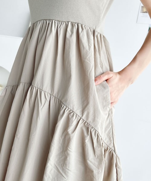異なる素材(リブ・ナイロン)の上下切り替えがアクセントになり