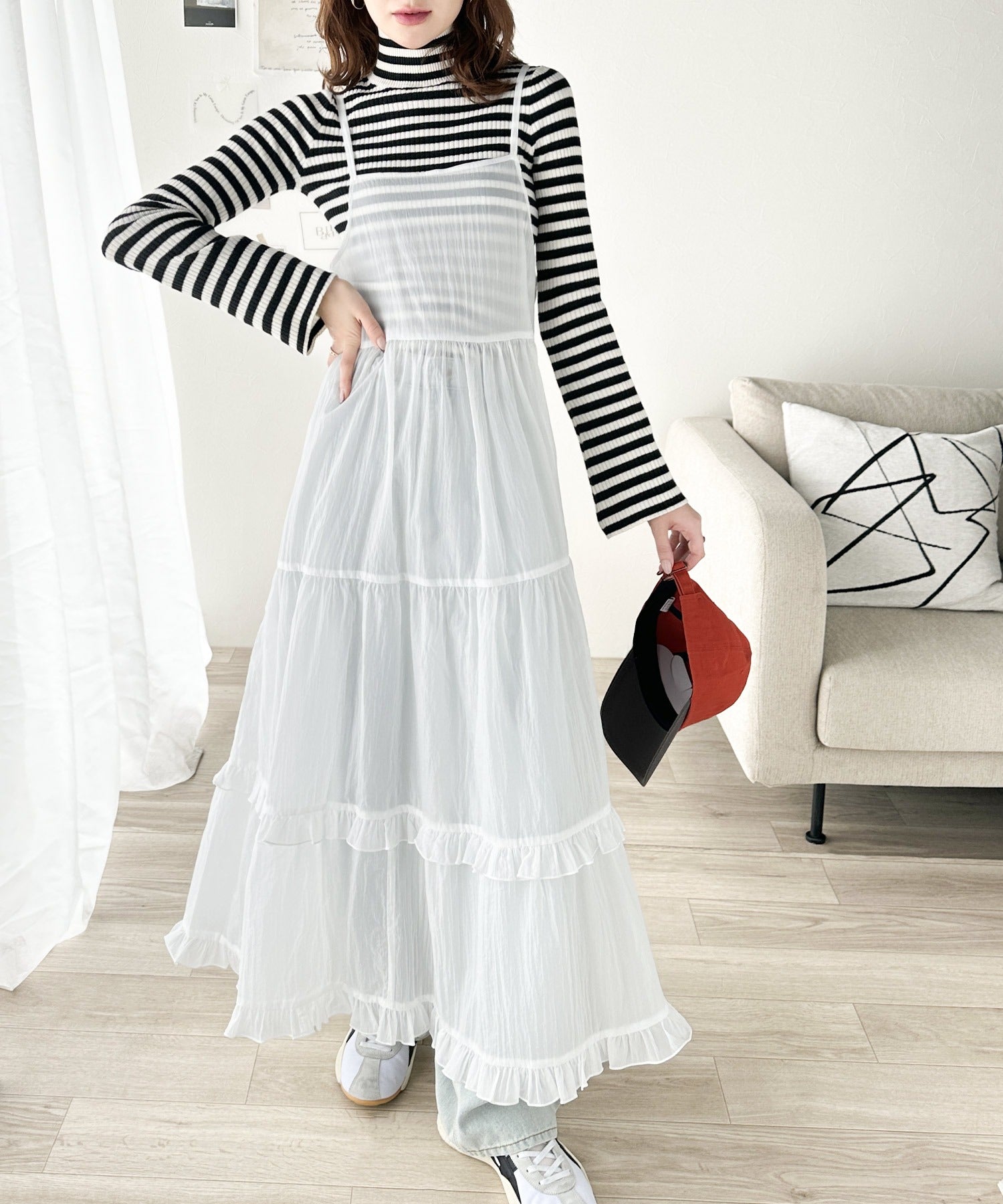 1枚で主役級のキャミワンピなので、インナーはシンプルな