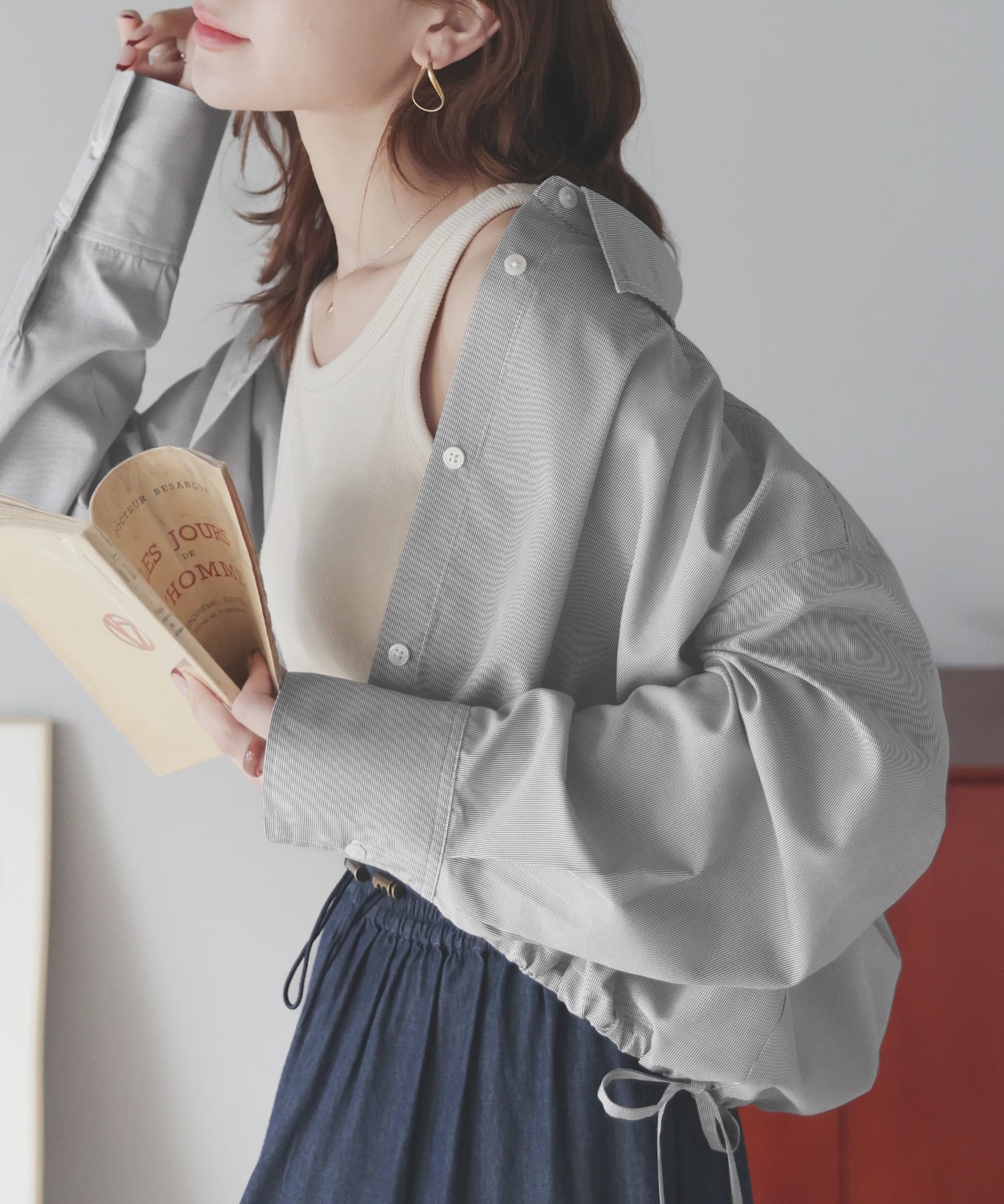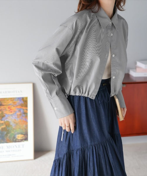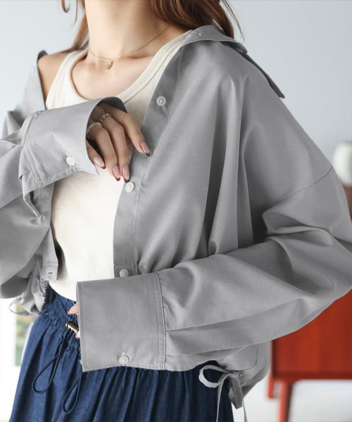 ルーズなシルエットが大人カワイイ。裾ドロストショート丈シャツ ce1010277