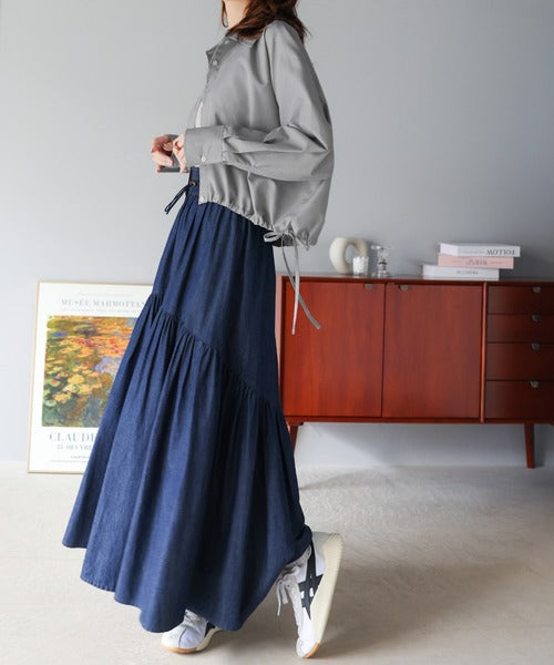 裾のドロストデザインといったワークテイストな雰囲気を持ちながら、