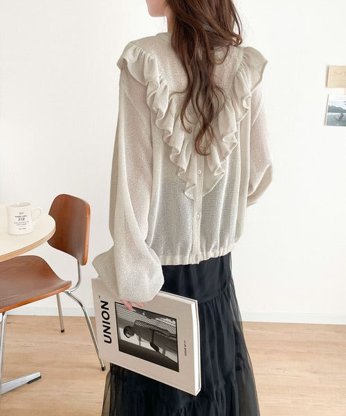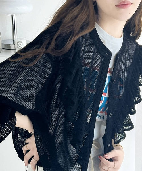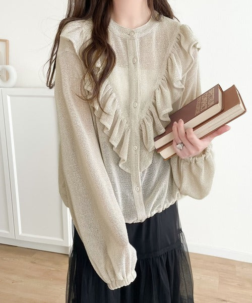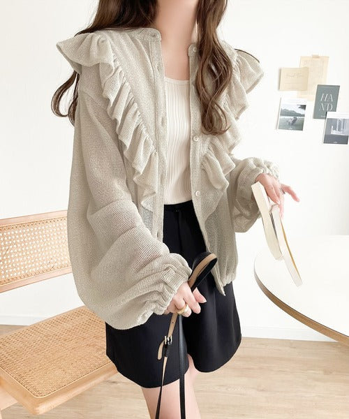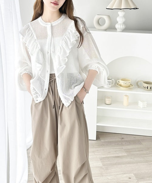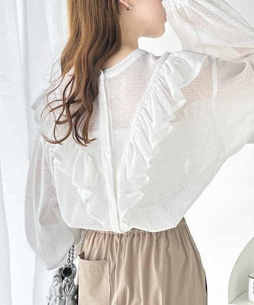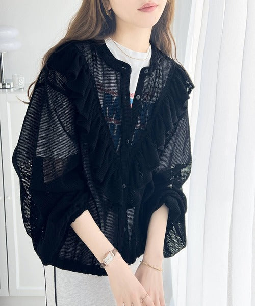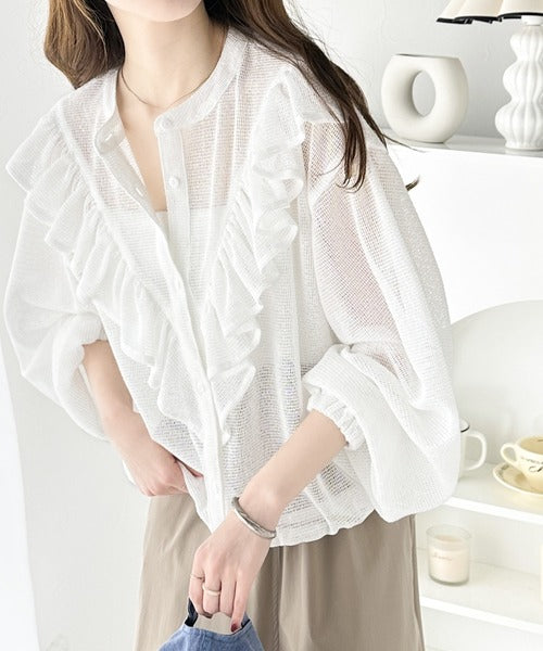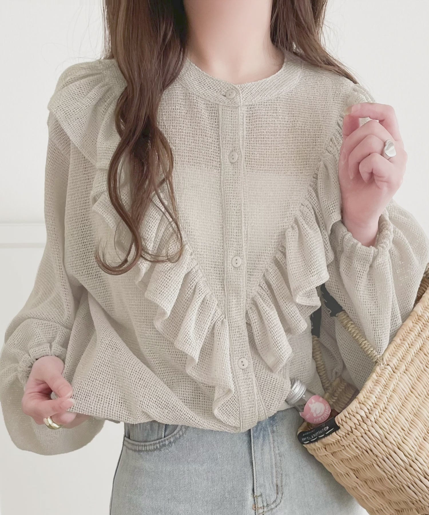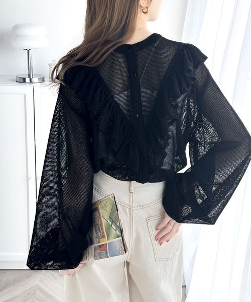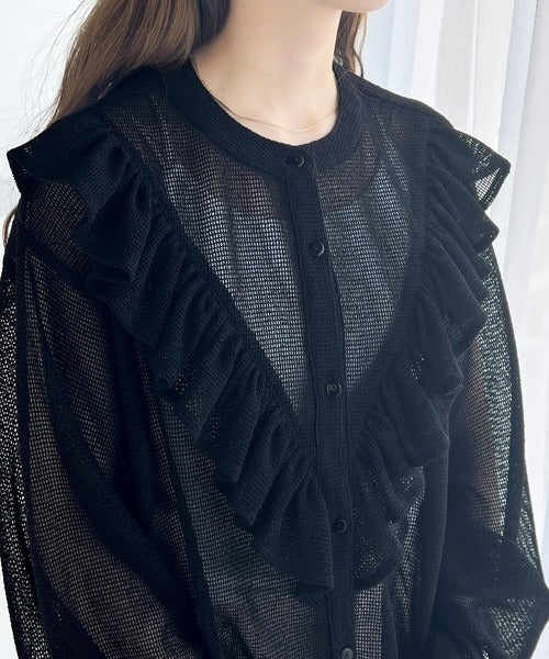 大人カジュアルに甘さをプラス。前後2wayフリルメッシュシャツ ce1010278