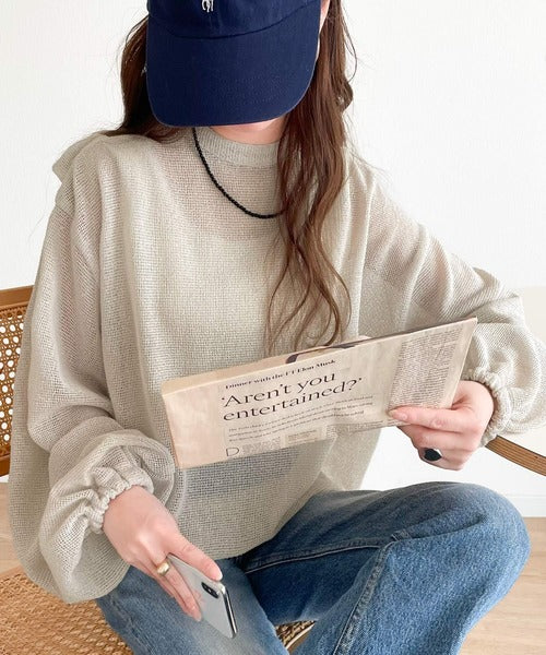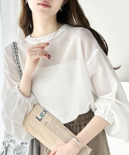 シアー感とボリュームスリーブが今っぽいスラブメッシュシャツ。