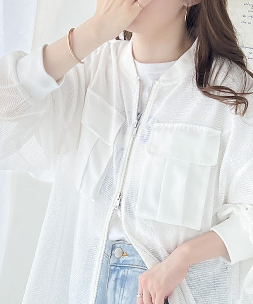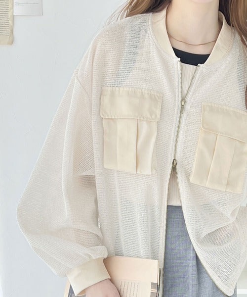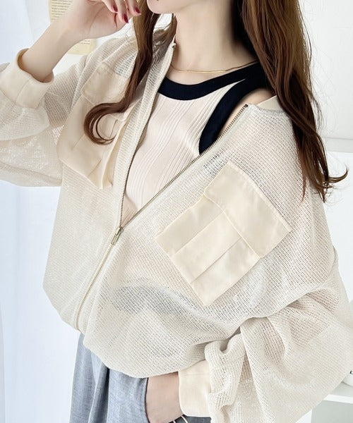 涼しげなスラブメッシュ素材を使用したブルゾンカーディガン。