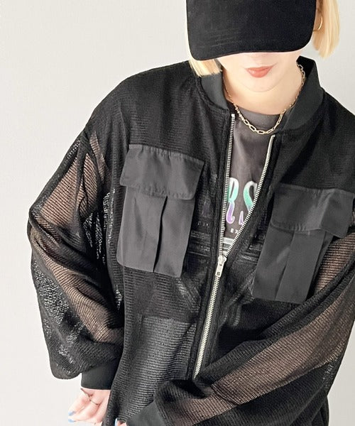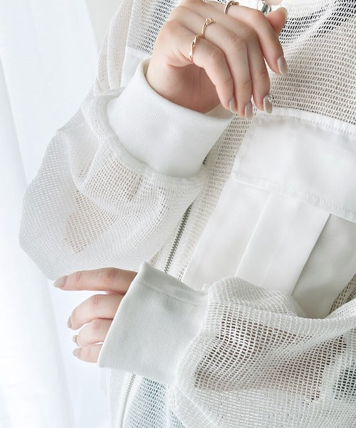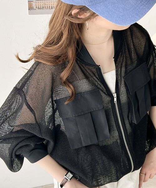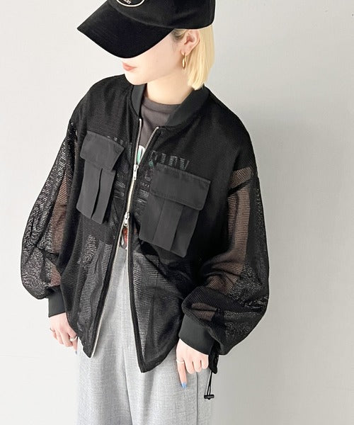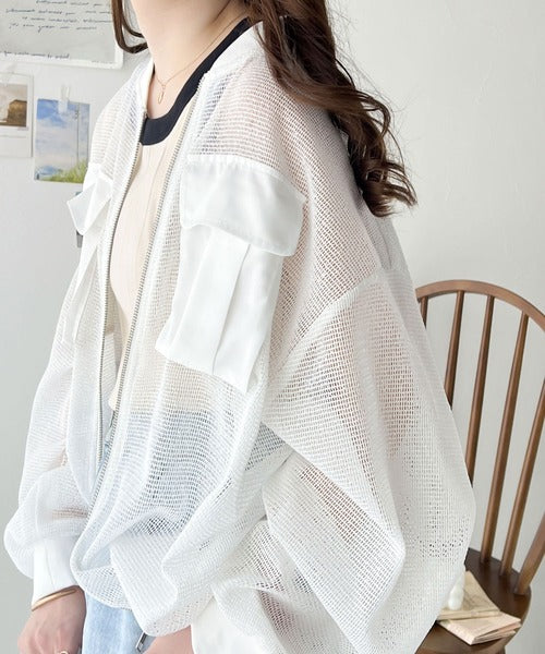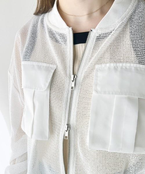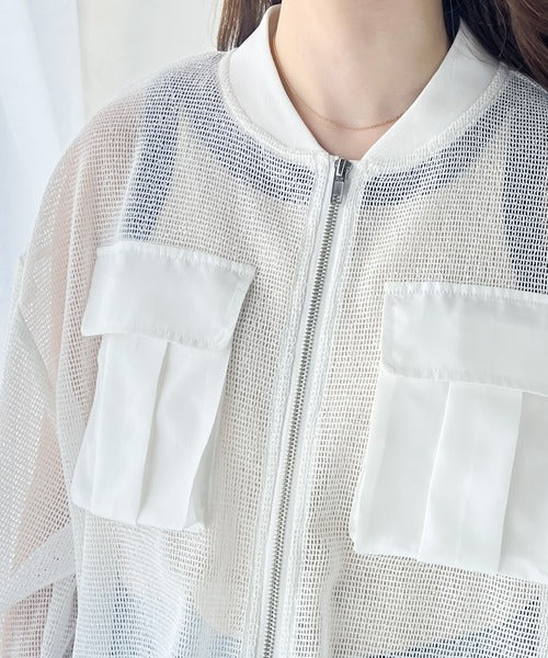 トレンドのメッシュブルゾンと程よい透け感でシーズンムード高まる一枚です。
