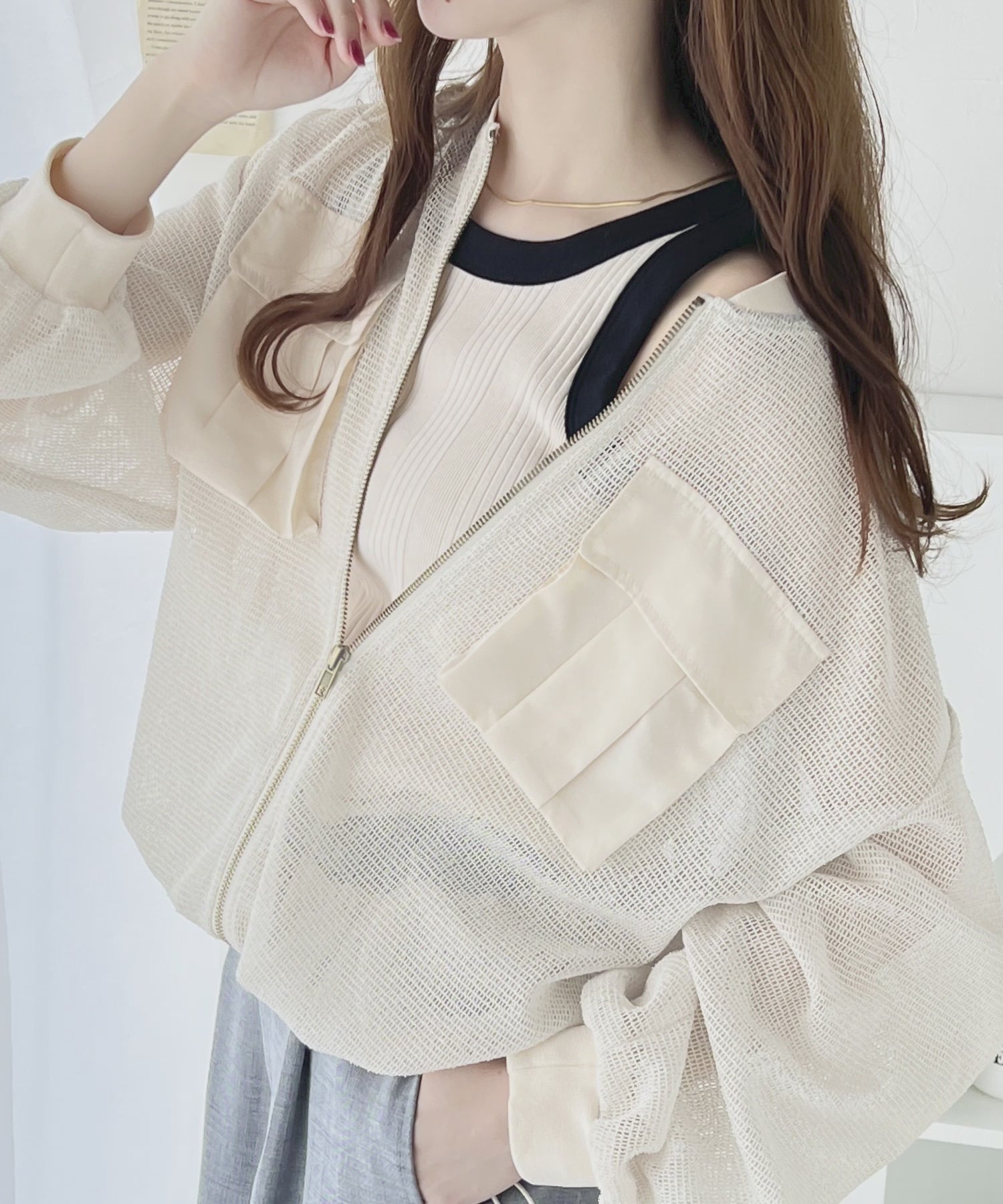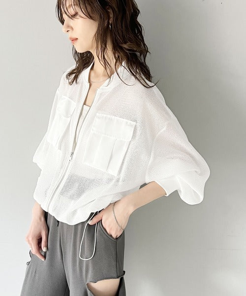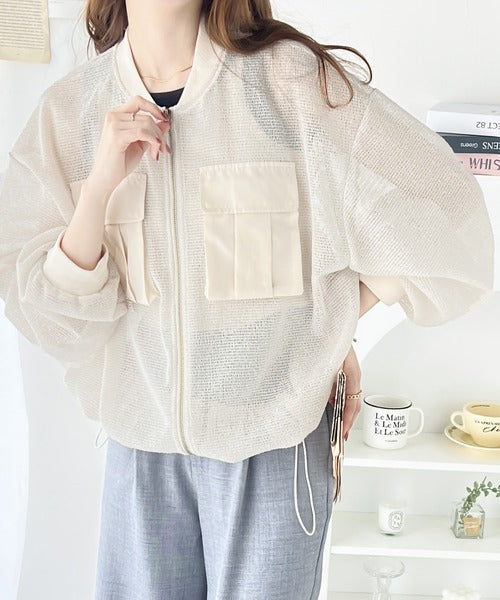 ラフに旬顔スタイル。スラブメッシュ裾ドロスト胸ポケットブルゾン ce1010286