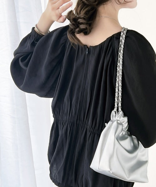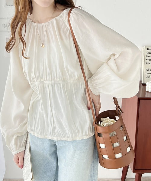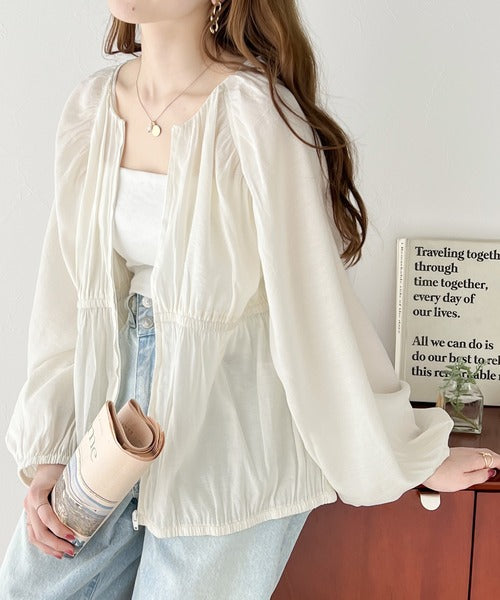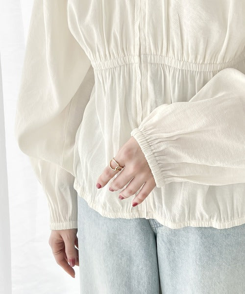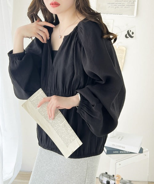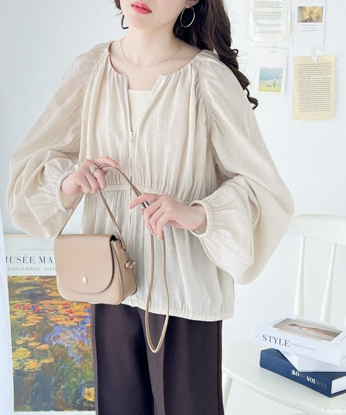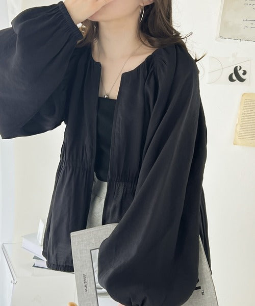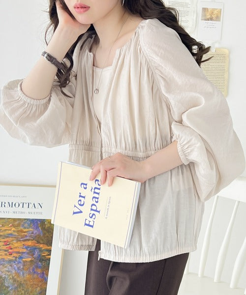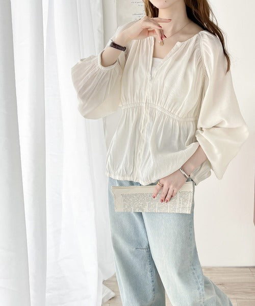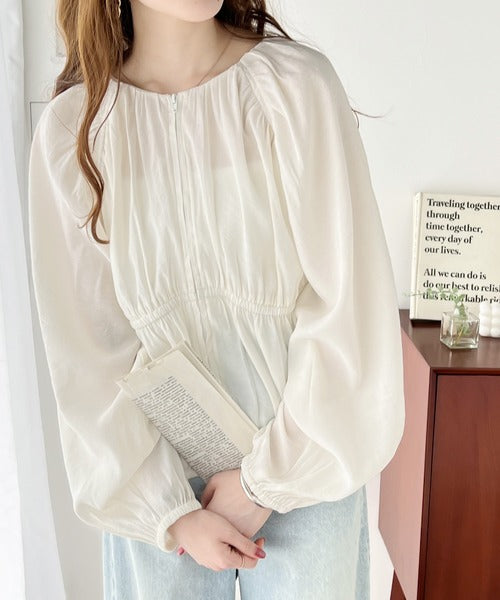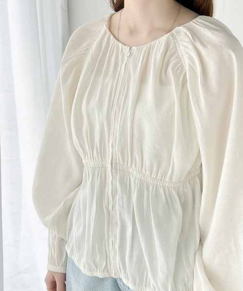ふんわりとしたボリュームスリーブが目を惹くジップブラウス。
