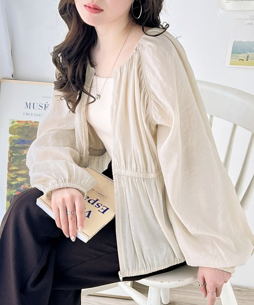 フェミニンな雰囲気を放つギャザーブルゾン。