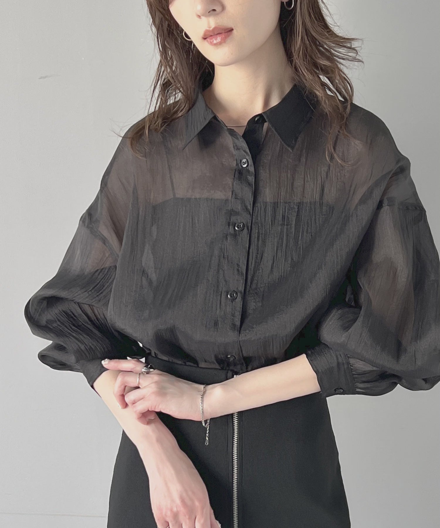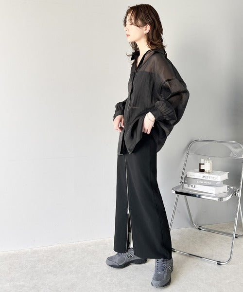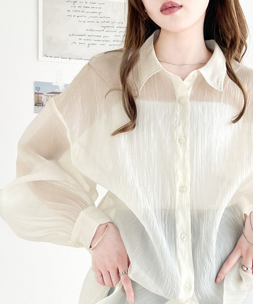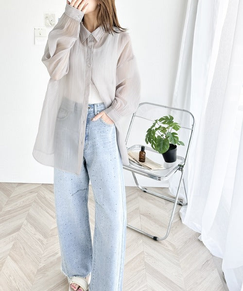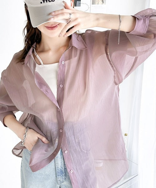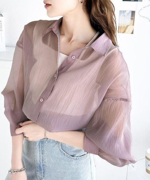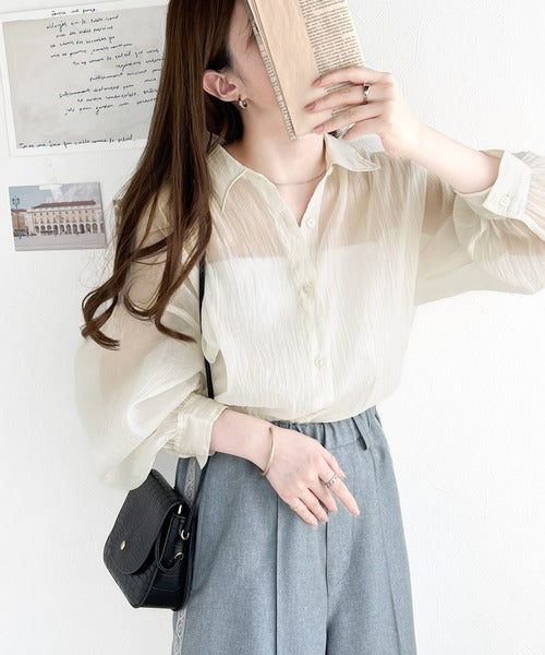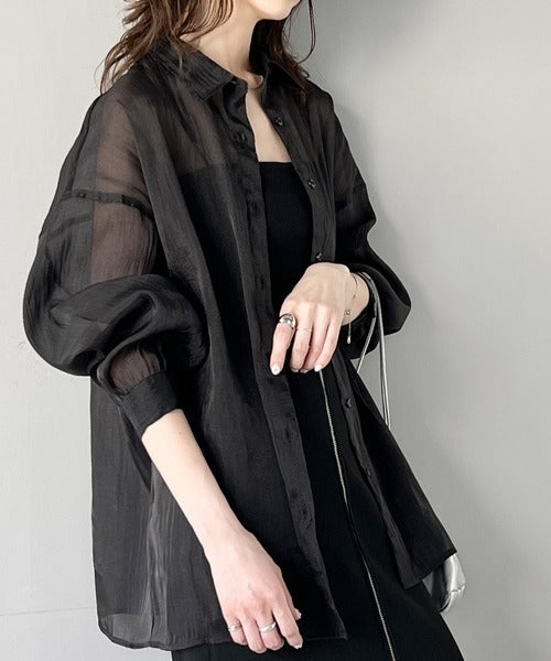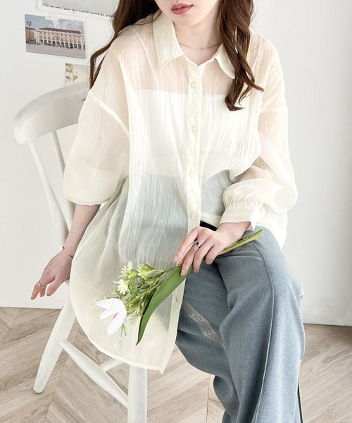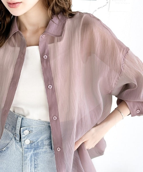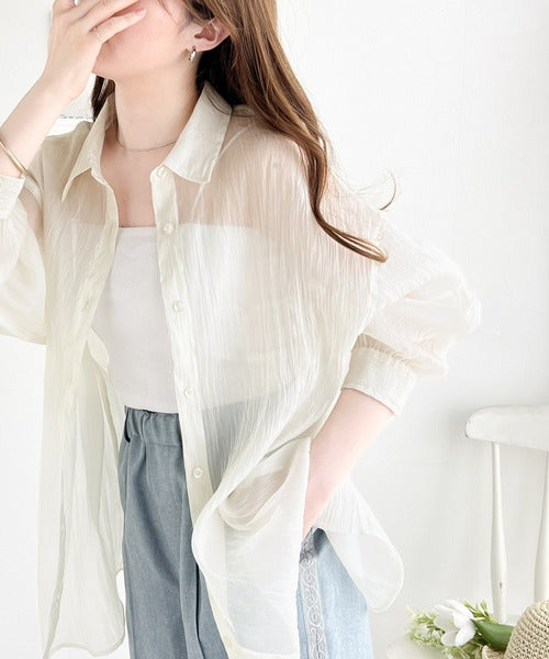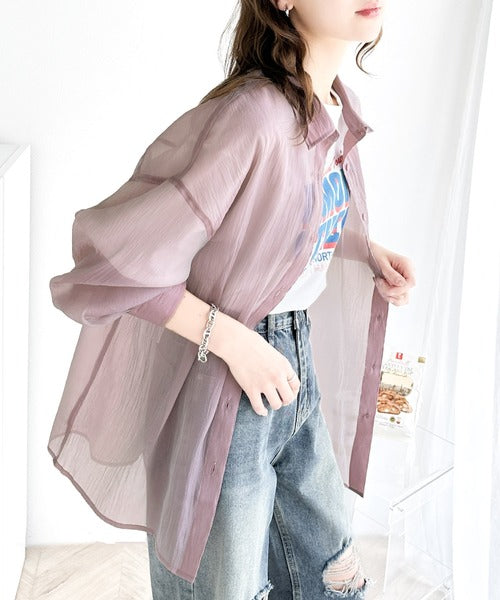 トレンド感溢れるシアー素材で、サッと羽織るだけで旬顔スタイルに。