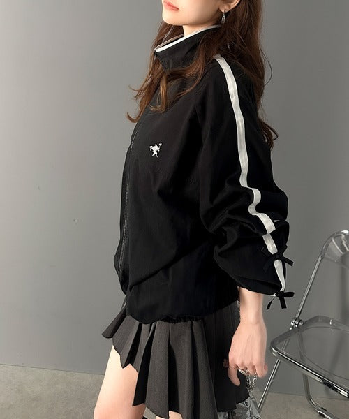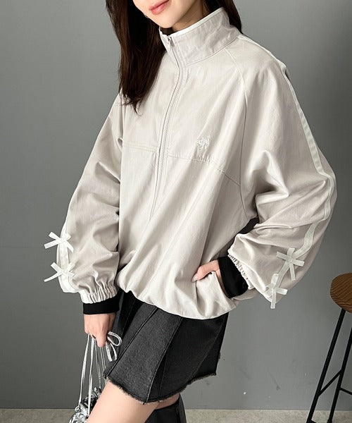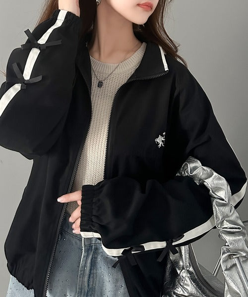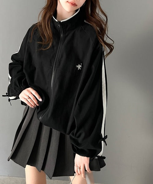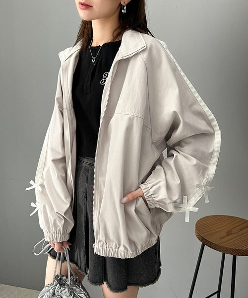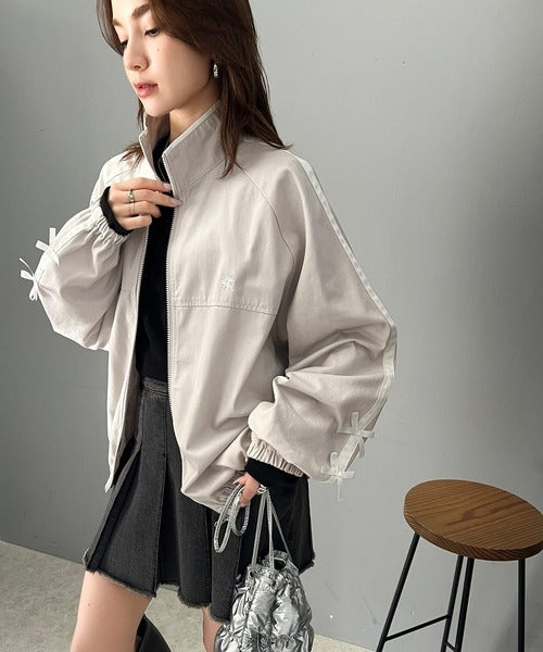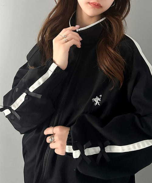 袖のサイドライン×リボンがトレンドライクなトラックジャケット。