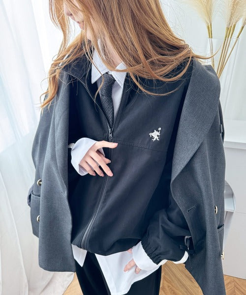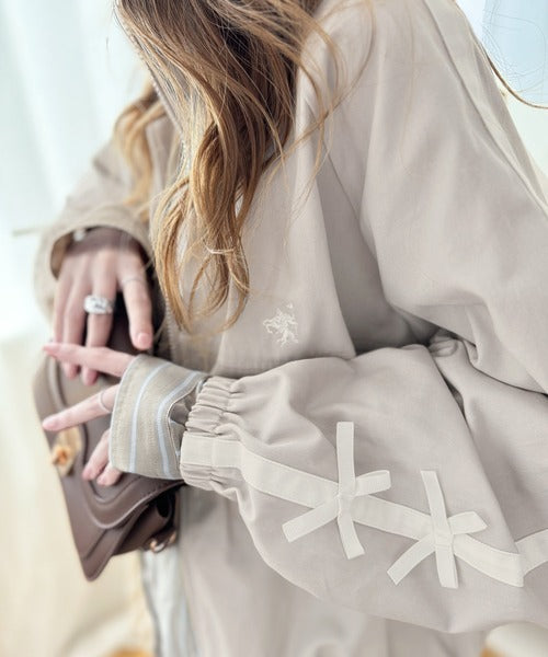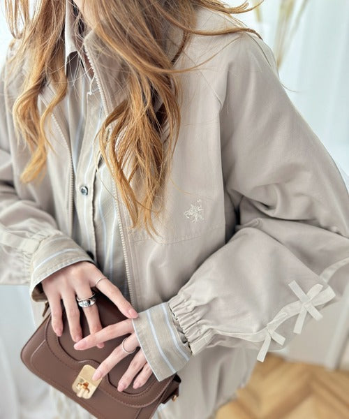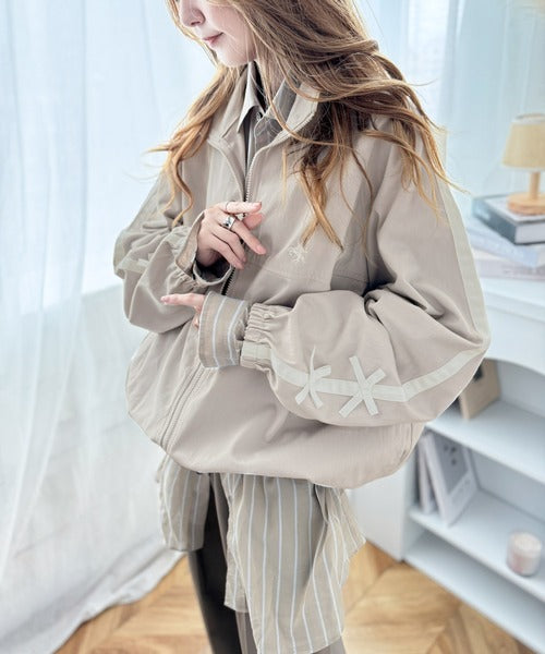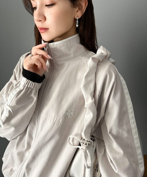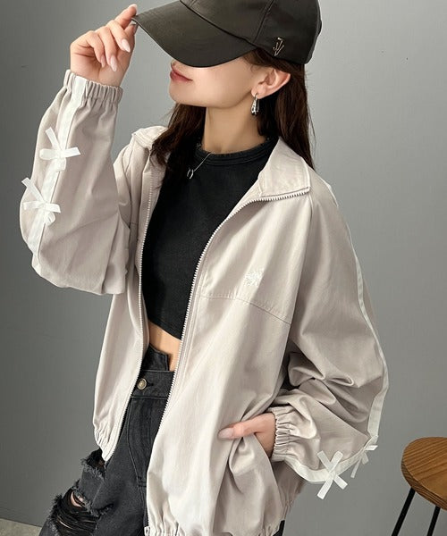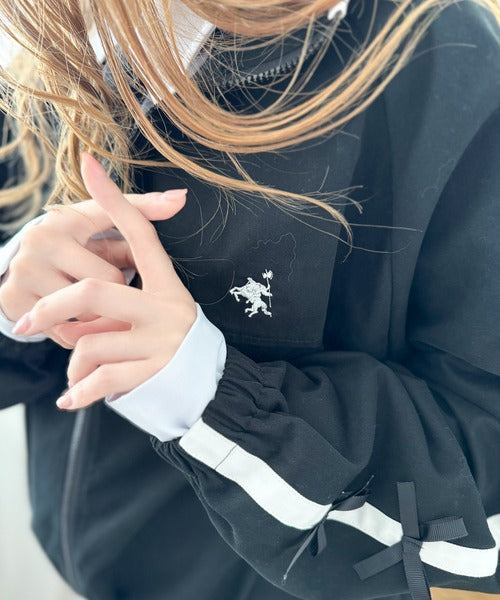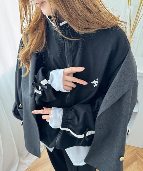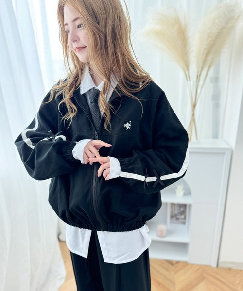 袖のリボンで甘さをプラス。綿100%胸刺繍入りトラックジャケット ce1010320