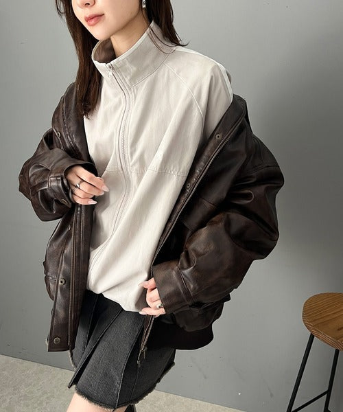 ゆったりとしたボリュームのあるフルジップジャケットなのでジップを閉めてハイネックで着こなしても、