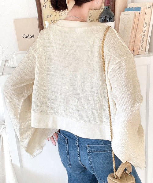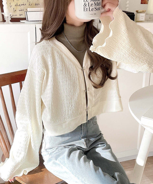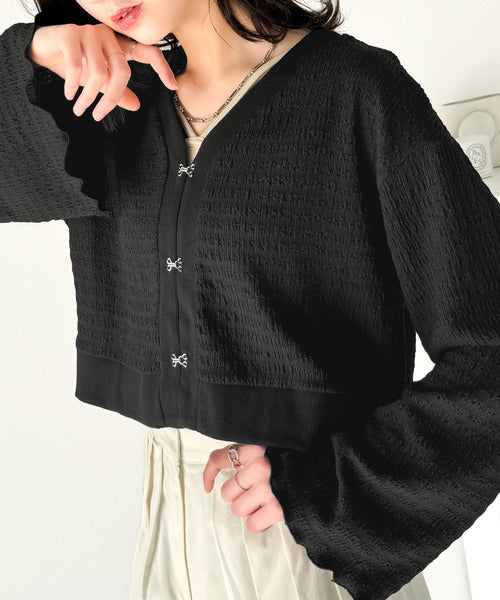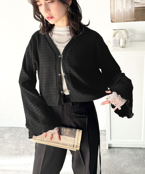 フレアスリーブが魅力的なジャガードカーディガン。