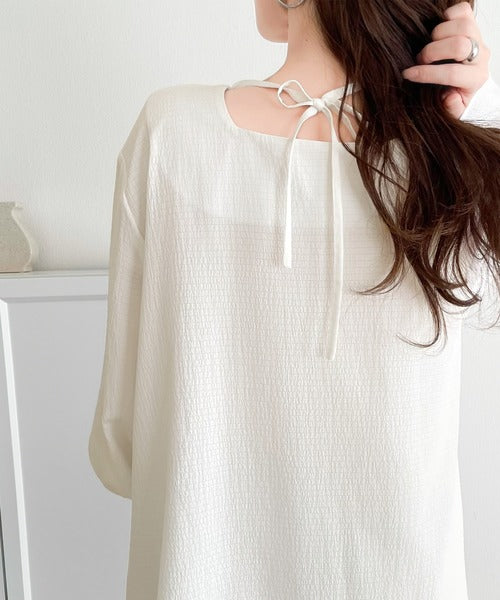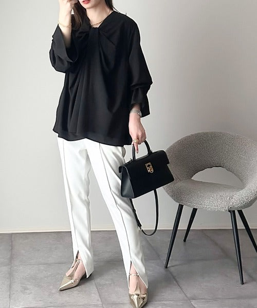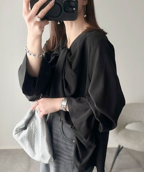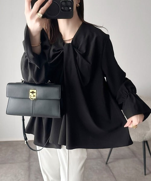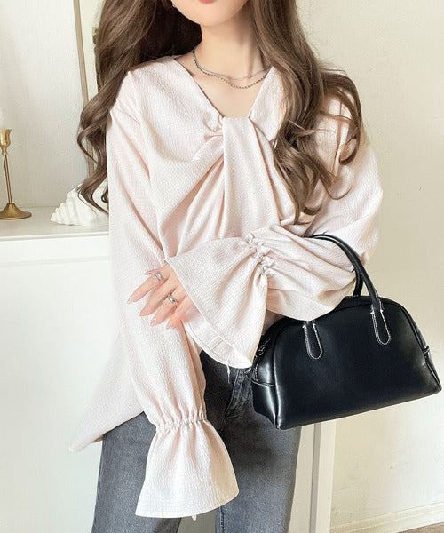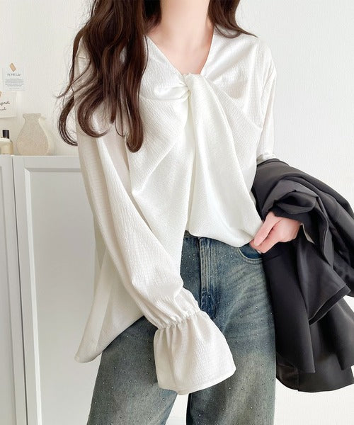 立体的なツイストリボンデザインが特徴的のブラウス。