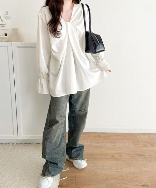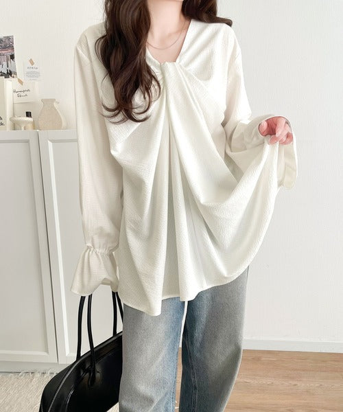 大人可愛い。前後2wayツイストデザインキャンディスリーブブラウス(長袖) ce1010415