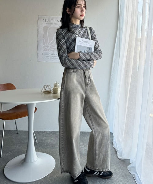 その日の気分に合わせてデニムやフレアパンツを合わせてもOK◎