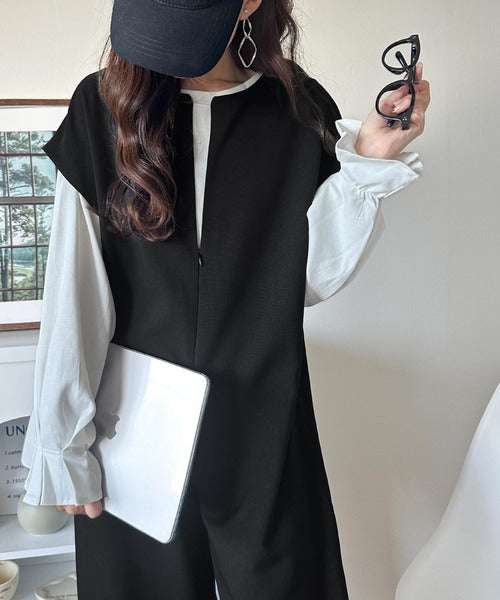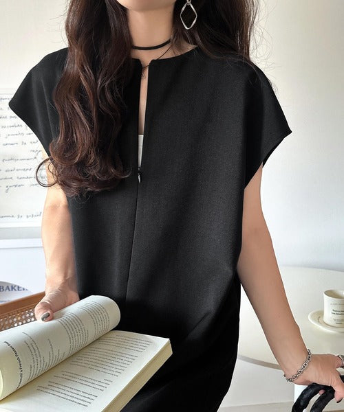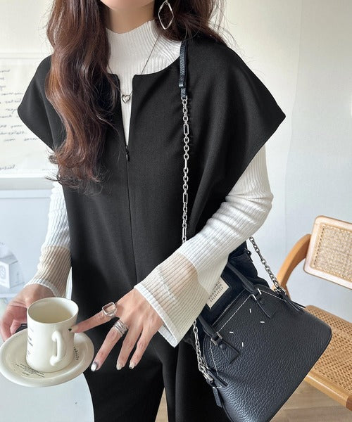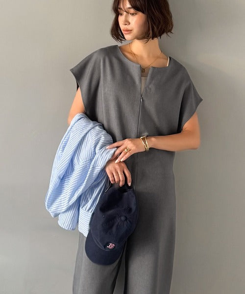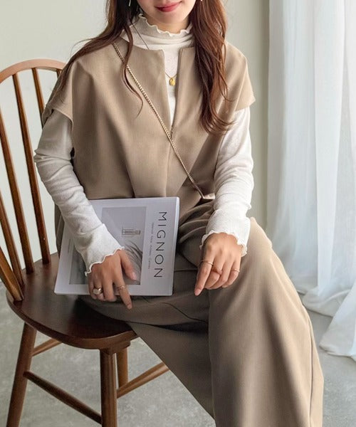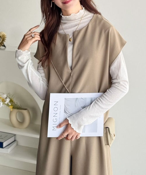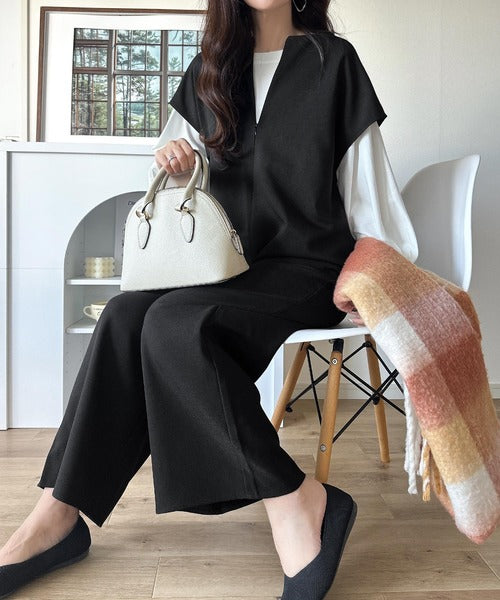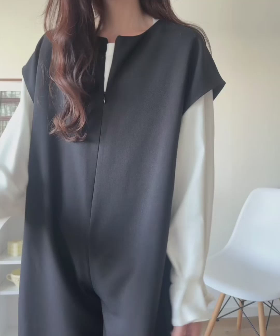 シンプルだけど、襟元に大人の抜け感。ハーフジップオールインワン ce1010499