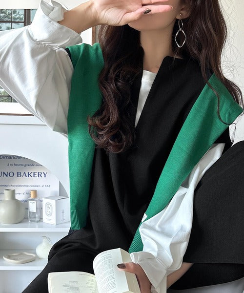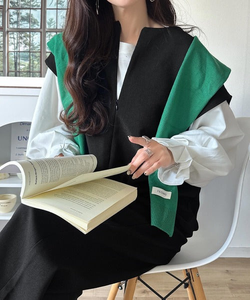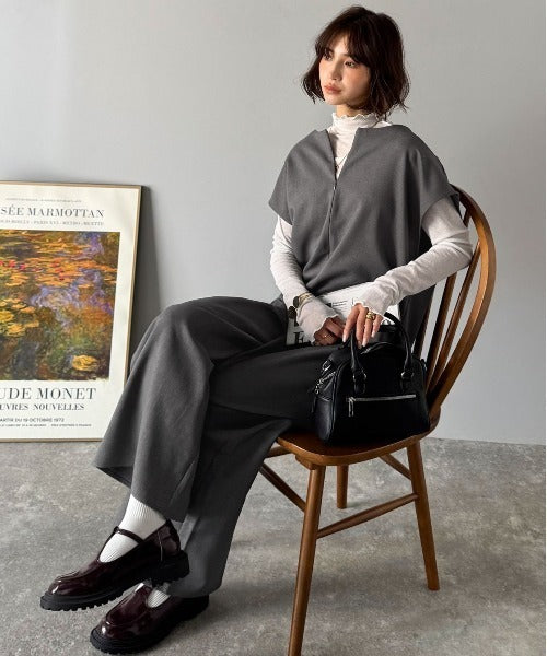 肌寒い季節はリブニットやタートルニットをレイヤードして、