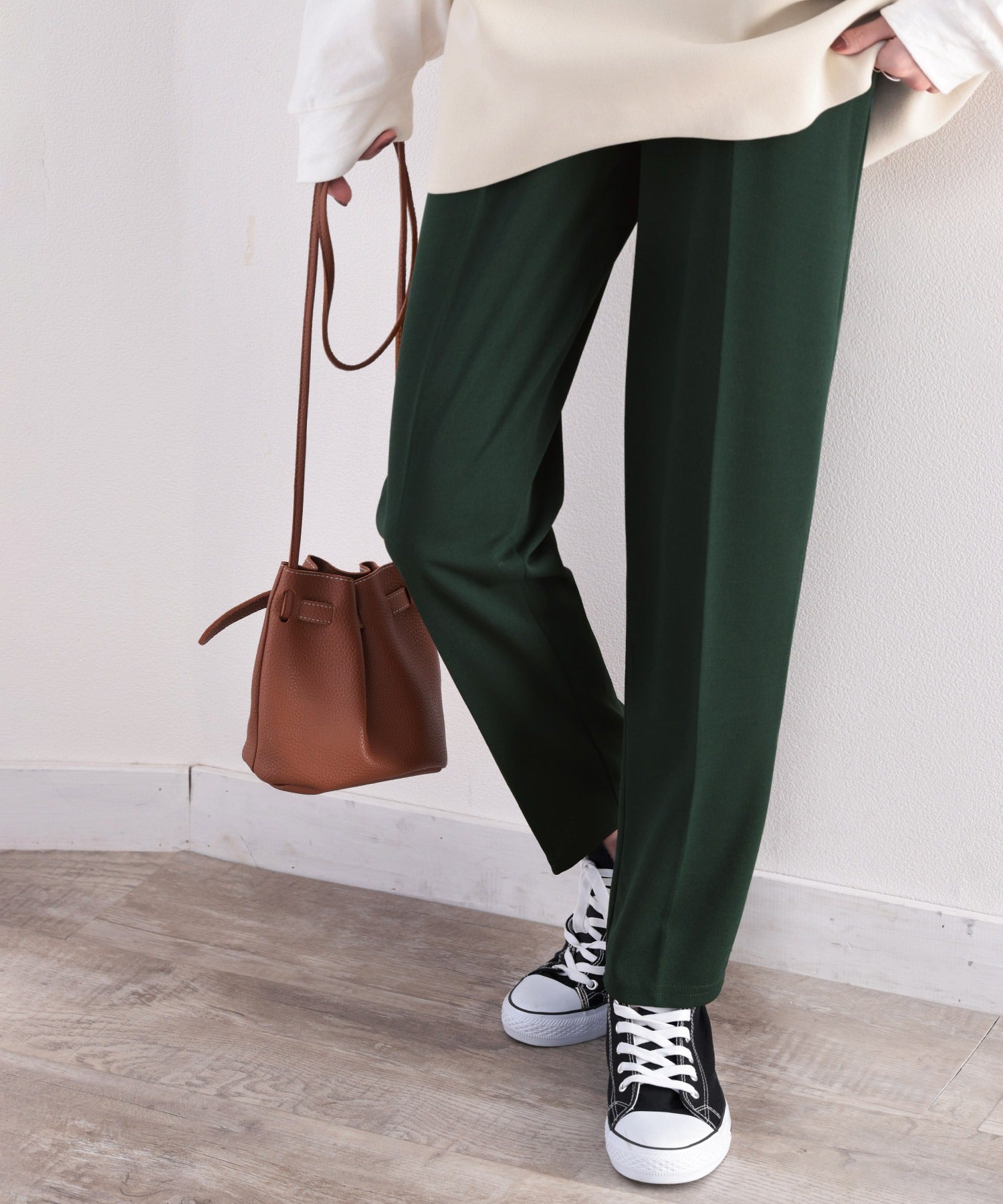 穿くだけでスタイルアップを叶えてくれるカットソーパンツ。