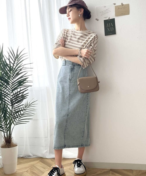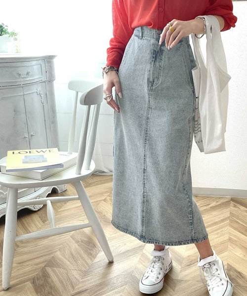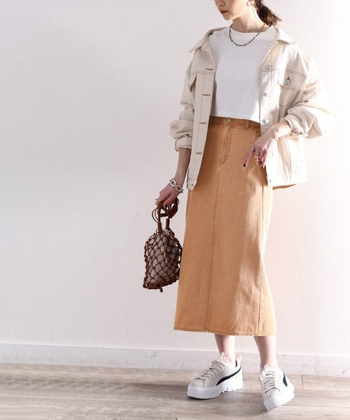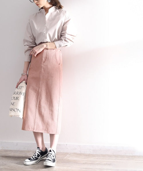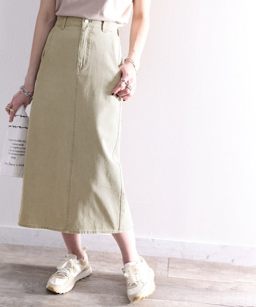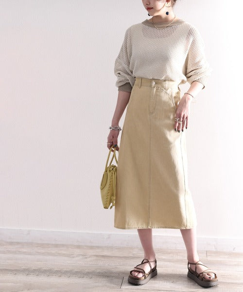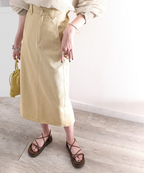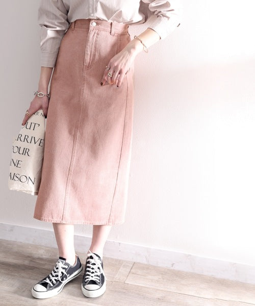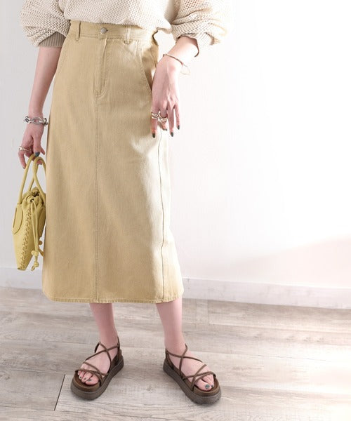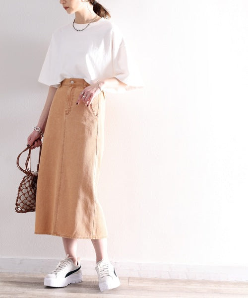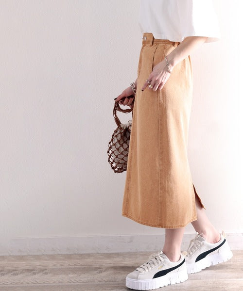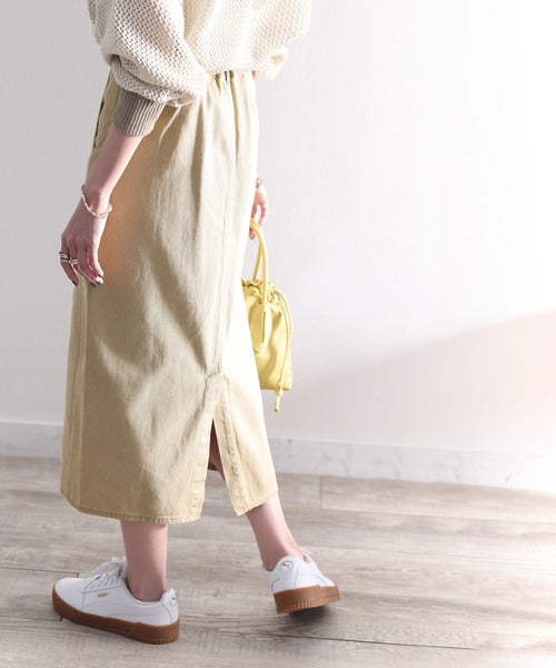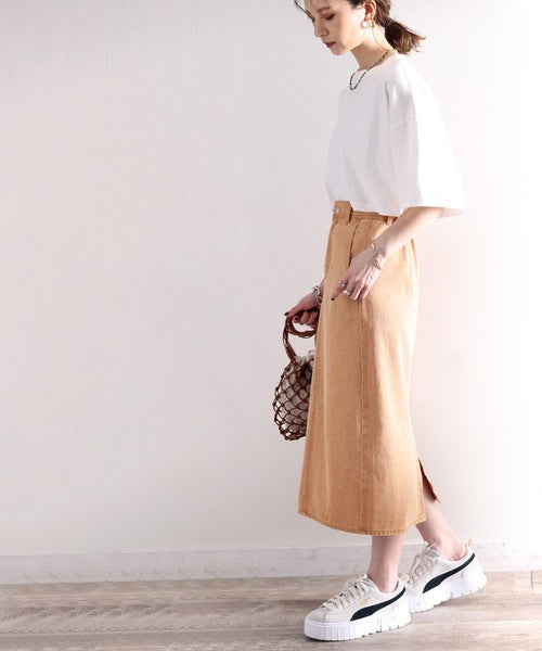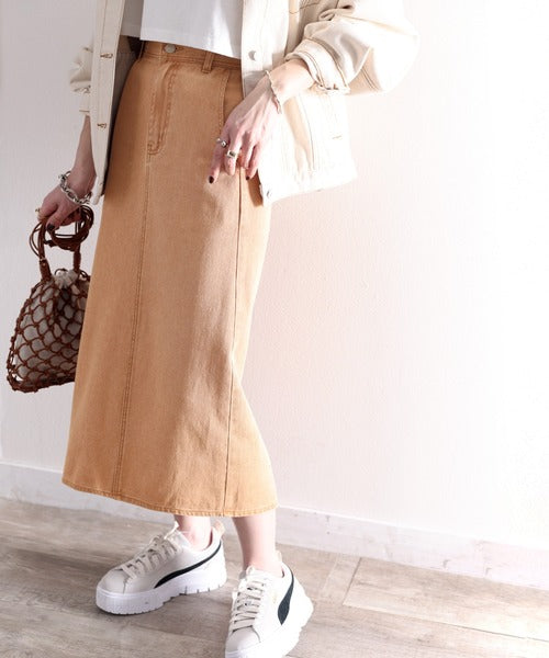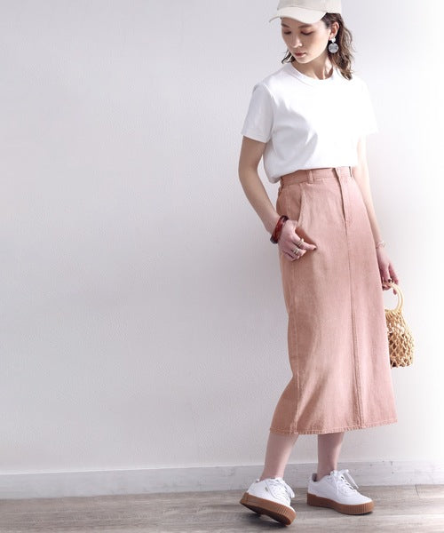 レトロカラーの魅力。綿100%、ヴィンテージ加工ナロースカート ce1015018