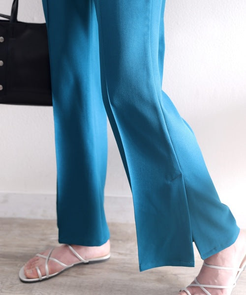 今っぽい足元を作る、サイドスリットセミフレアパンツ。