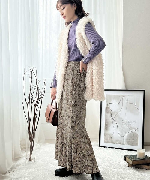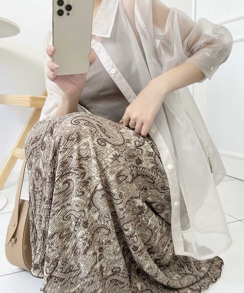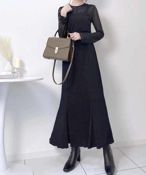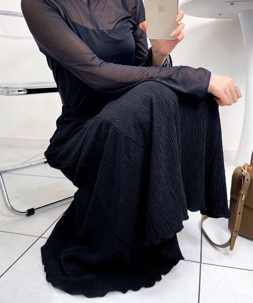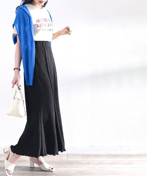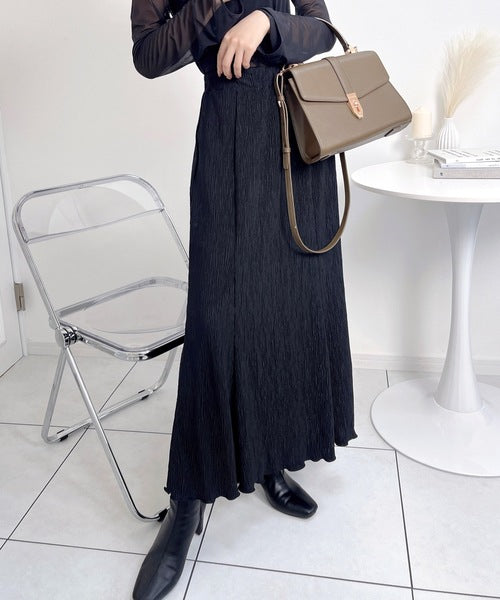 アンニュイな雰囲気。楊柳ランダムプリーツマーメイドスカート ce1015034