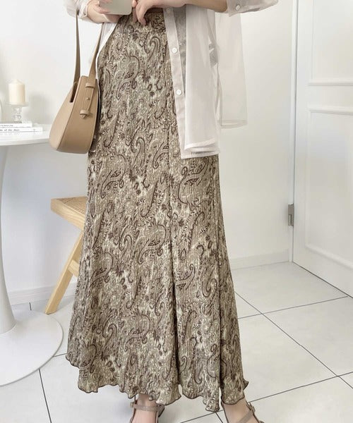 ペイズリー柄や小花柄は、シンプルトップスを合わせるだけで即キマる。